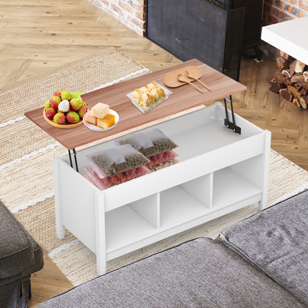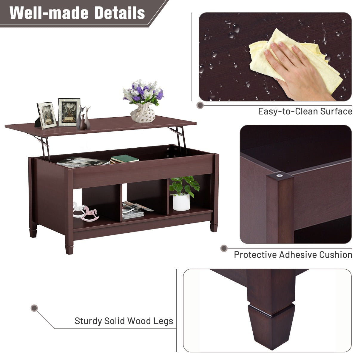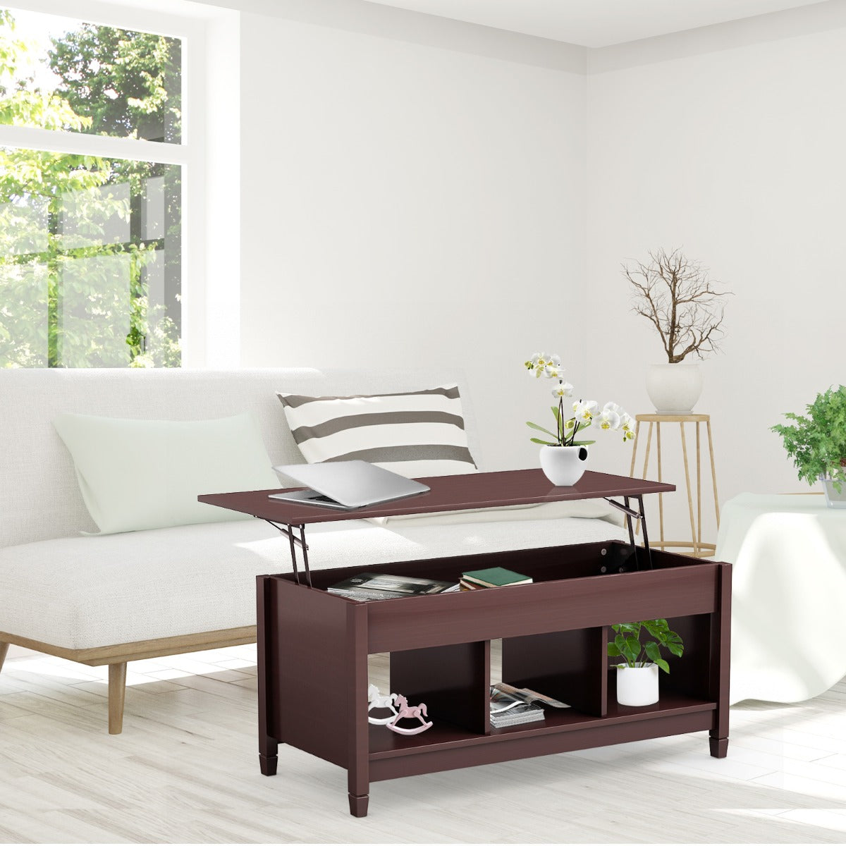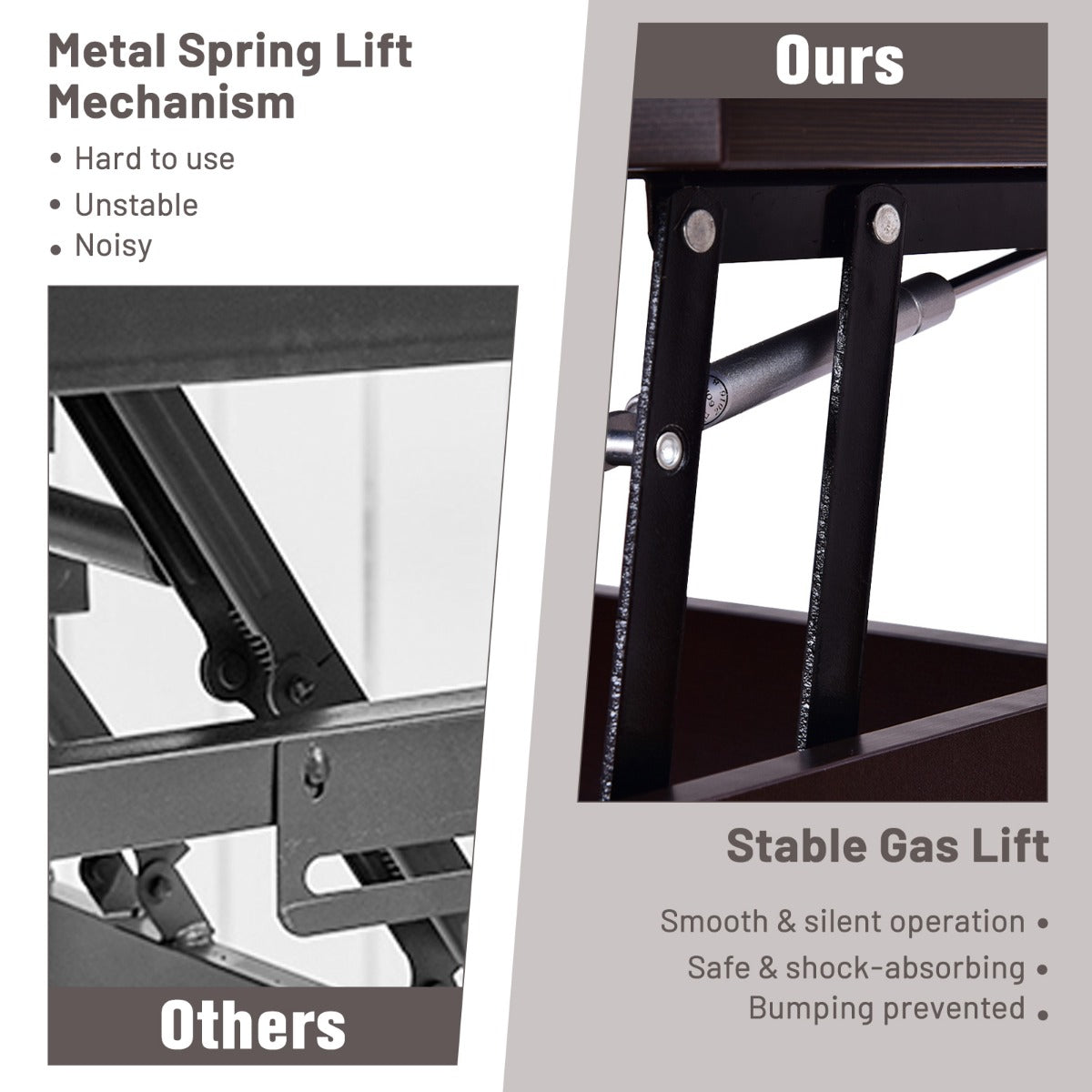 Multifunctional Lift-Top Table: The convenient lift-top design of this coffee table allows you to raise and pull the tabletop closer to you for working on your laptop, dining or playing games while relaxing on your sofa. Besides, the heavy-duty gas strut and anti-bumping adhesive cushions ensure stable, smooth and silent operation.