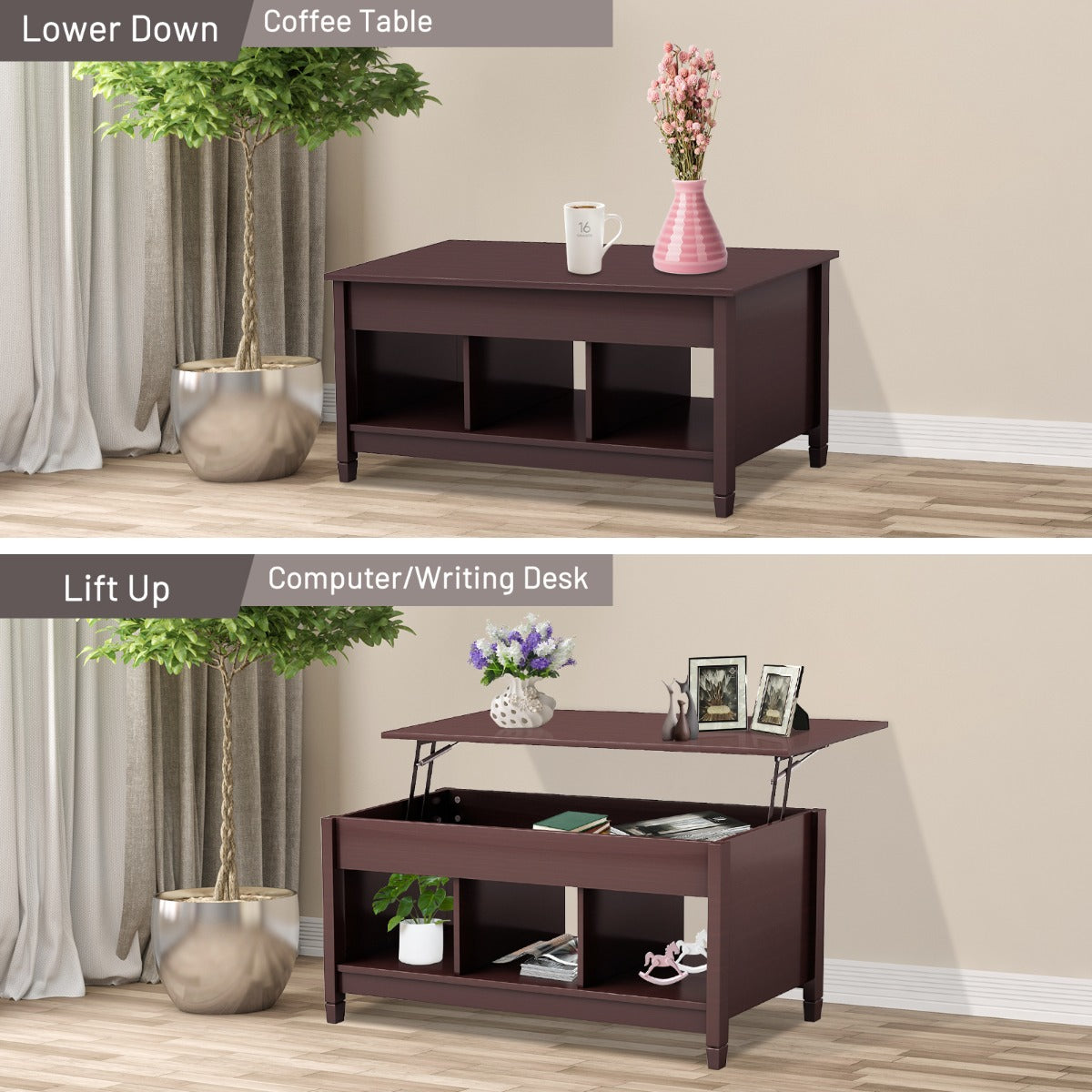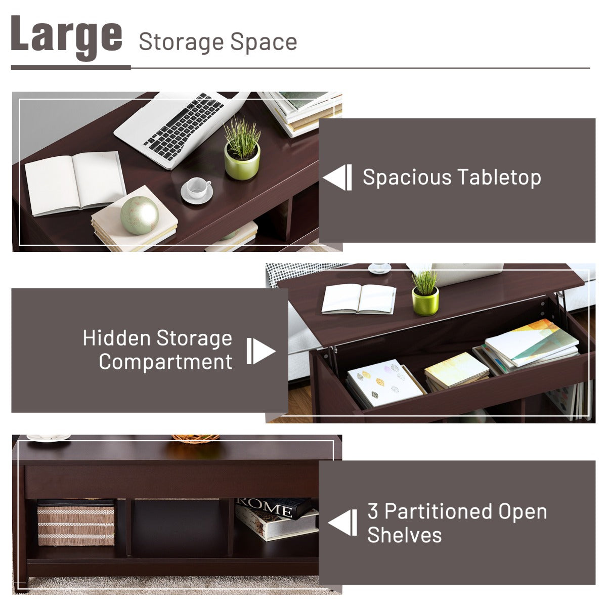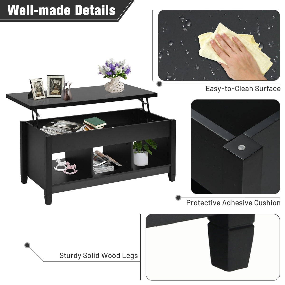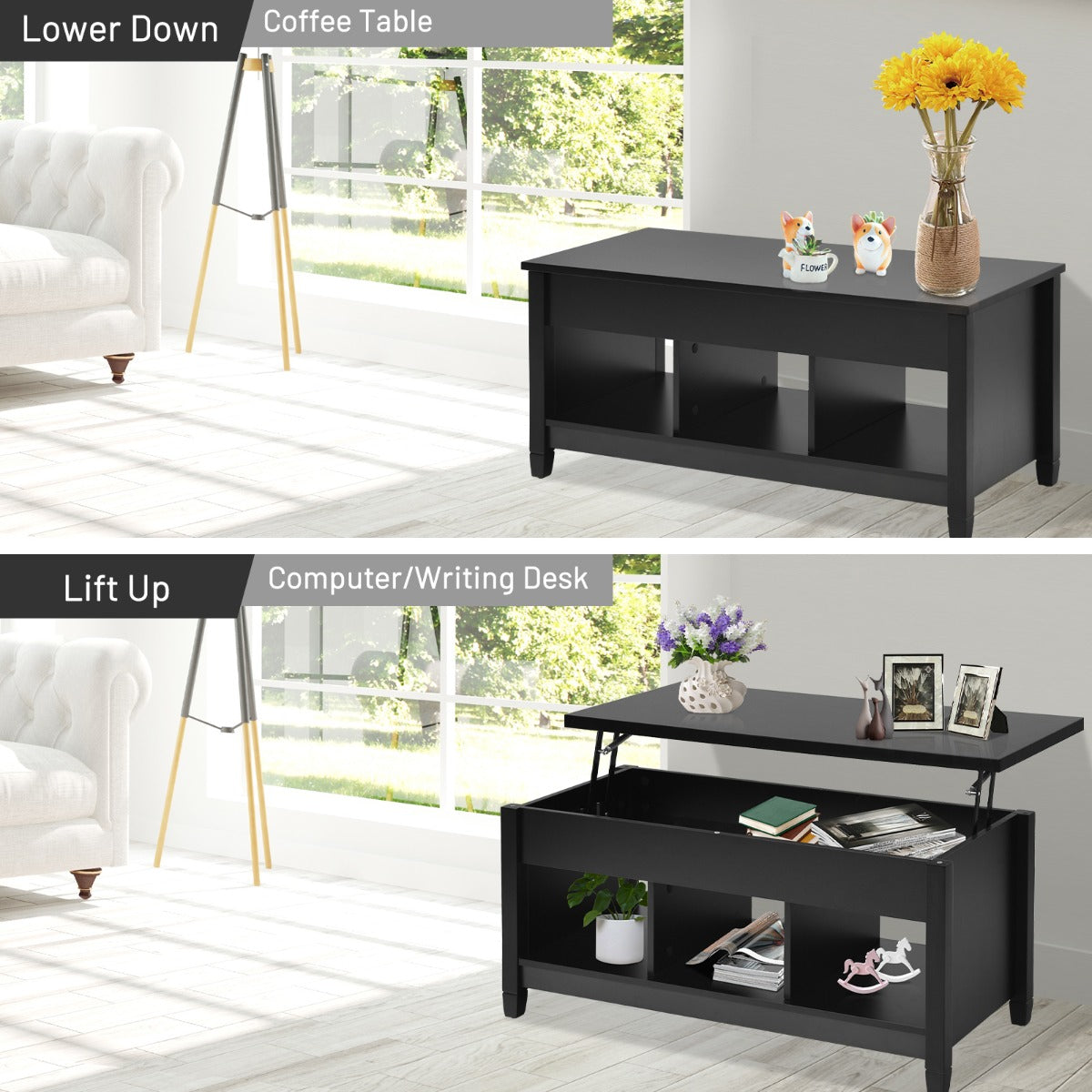 Multifunctional Lift-Top Table: The convenient lift-top design of this coffee table allows you to raise and pull the tabletop closer to you for working on your laptop, dining or playing games while relaxing on your sofa. Besides, the heavy-duty gas strut and anti-bumping adhesive cushions ensure stable, smooth and silent operation.