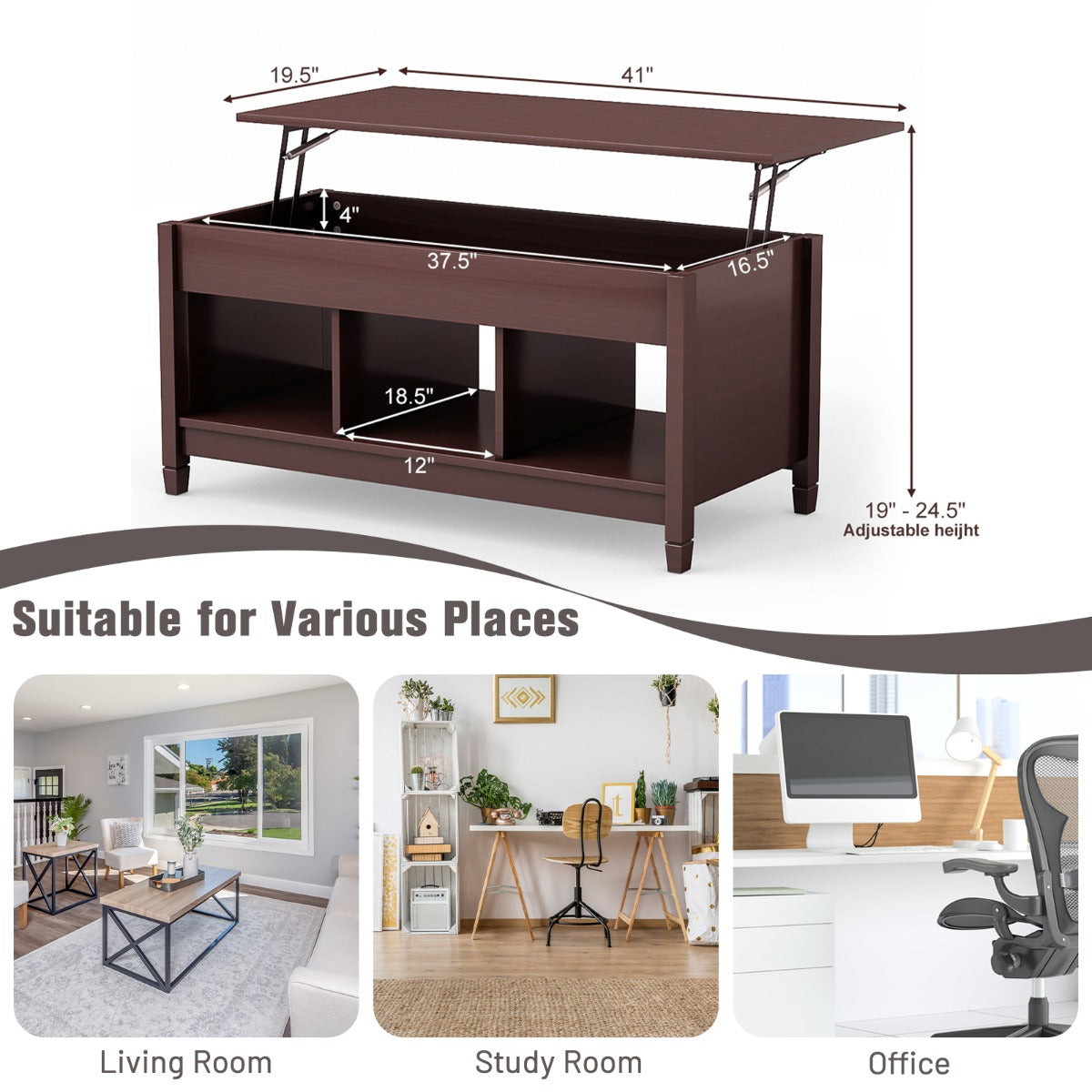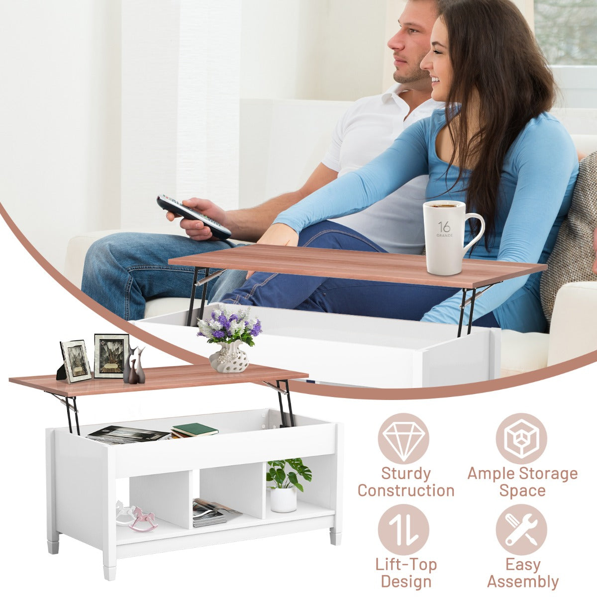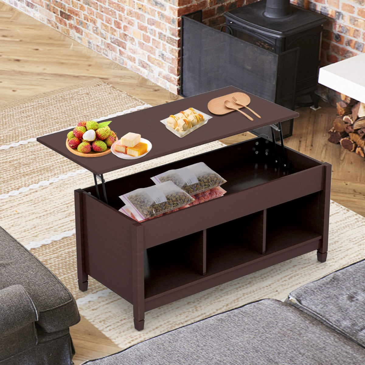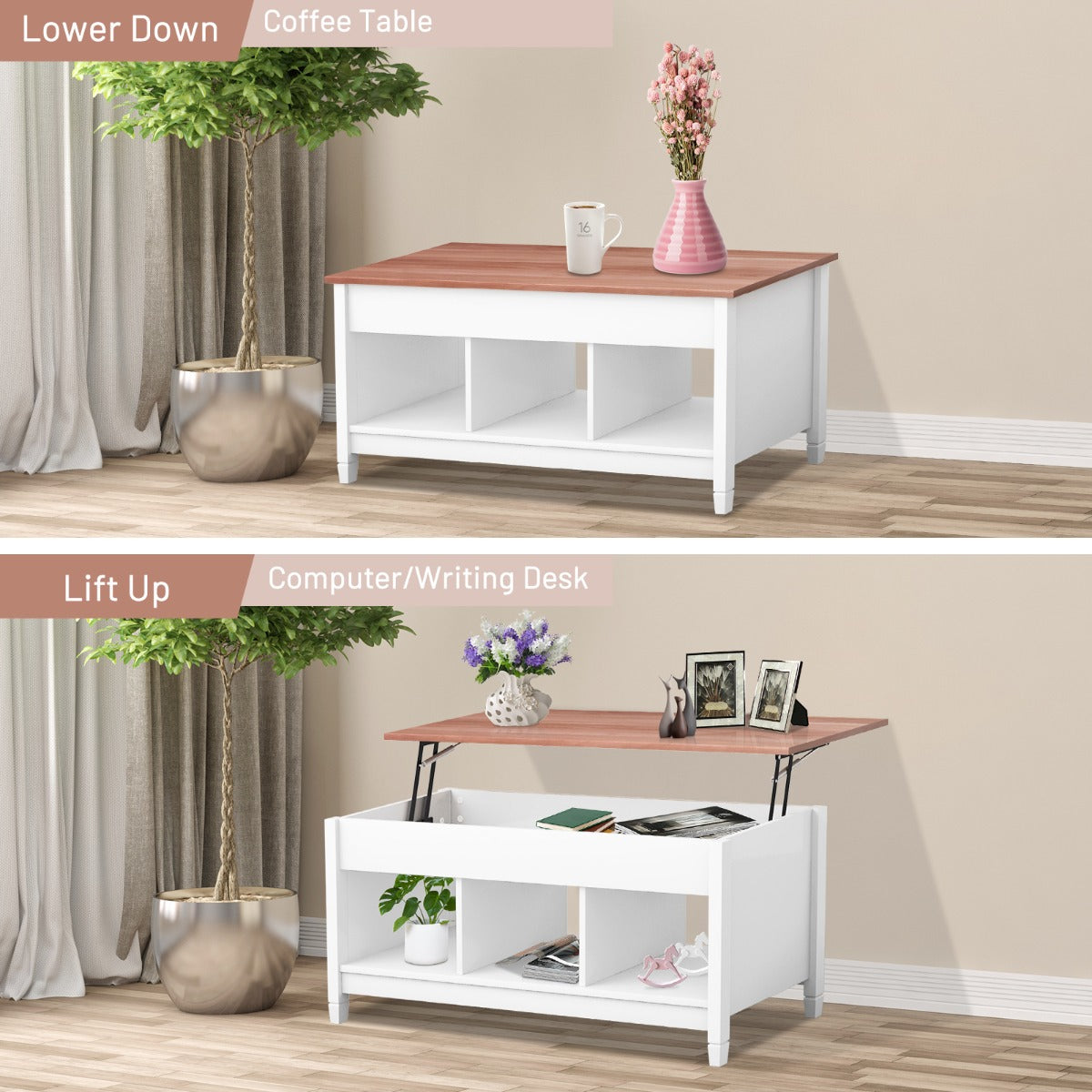 Multifunctional Lift-Top Table: The convenient lift-top design of this coffee table allows you to raise and pull the tabletop closer to you for working on your laptop, dining or playing games while relaxing on your sofa. Besides, the heavy-duty gas strut and anti-bumping adhesive cushions ensure stable, smooth and silent operation.