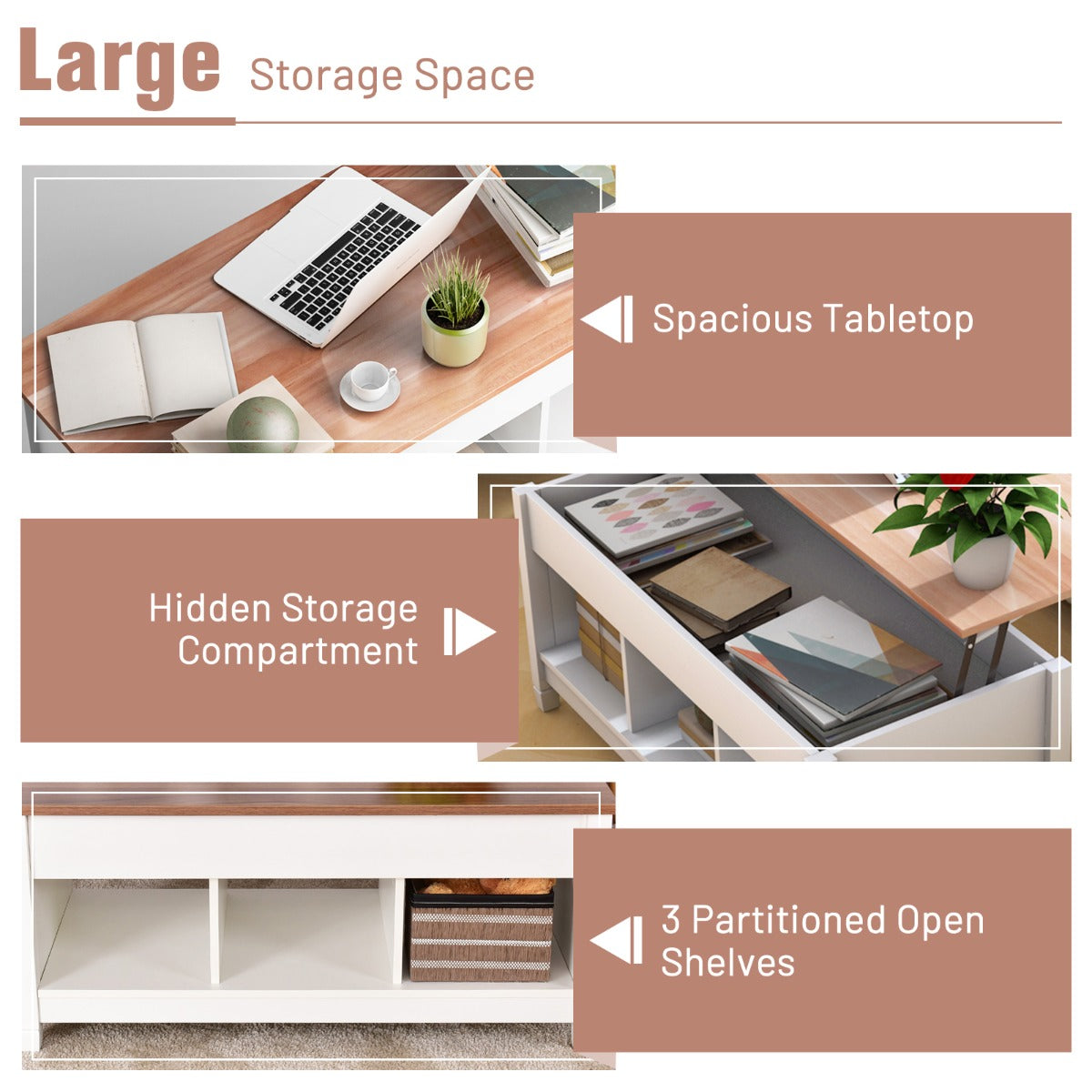 Hidden Storage and Open Shelf: The large hidden compartment beneath the tabletop can store your often-used items like magazines, remote controls, game controllers, etc, leaving a neat tabletop. In addition, 3 partitioned open shelves below the table can keep your daily items easily accessible and display your decorative items artfully.