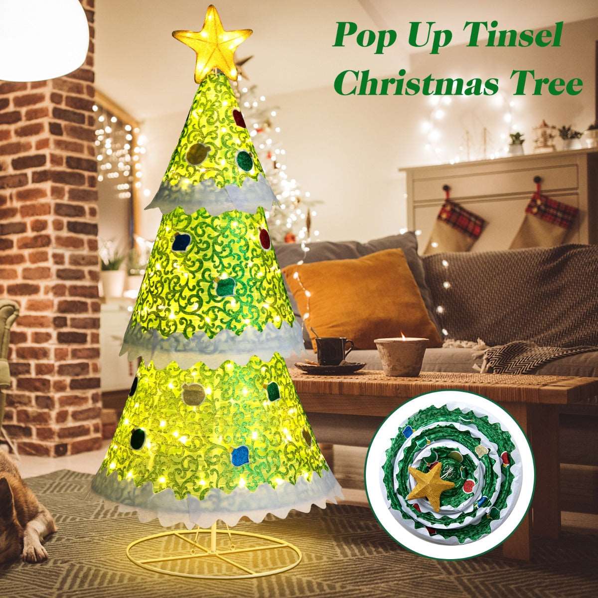 Delicate & Attractive Look: Our pop-up Christmas tree is exquisitely crafted with a unique wavy border around the bottom edge of each tier and a variety of decorative patterns on the glittering green cloth. In addition, there is a large tree-top star, which makes the whole tree look even more gorgeous.