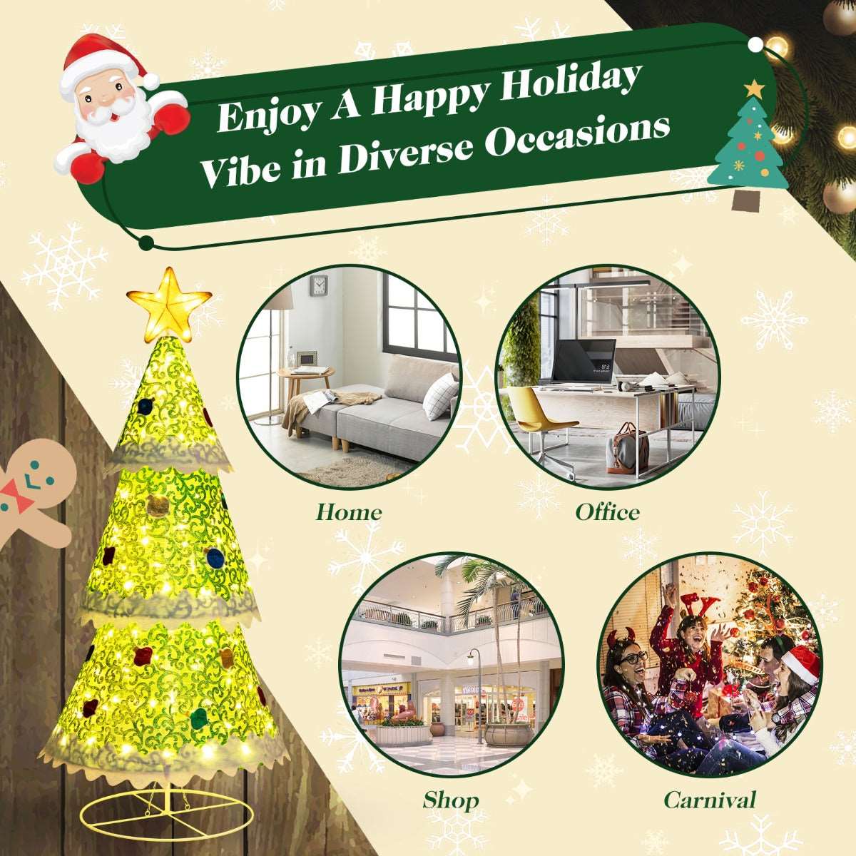 Cheerful Indoor & Outdoor Decor: Our pop-up Christmas tree has a stylish and fabulous look and is an essential holiday or party decoration. And it's suitable for both indoor and outdoor use, so using it to decorate your home, yard, lawn or office will be a perfect addition. Besides, it's easy to store for reuse at your next party.