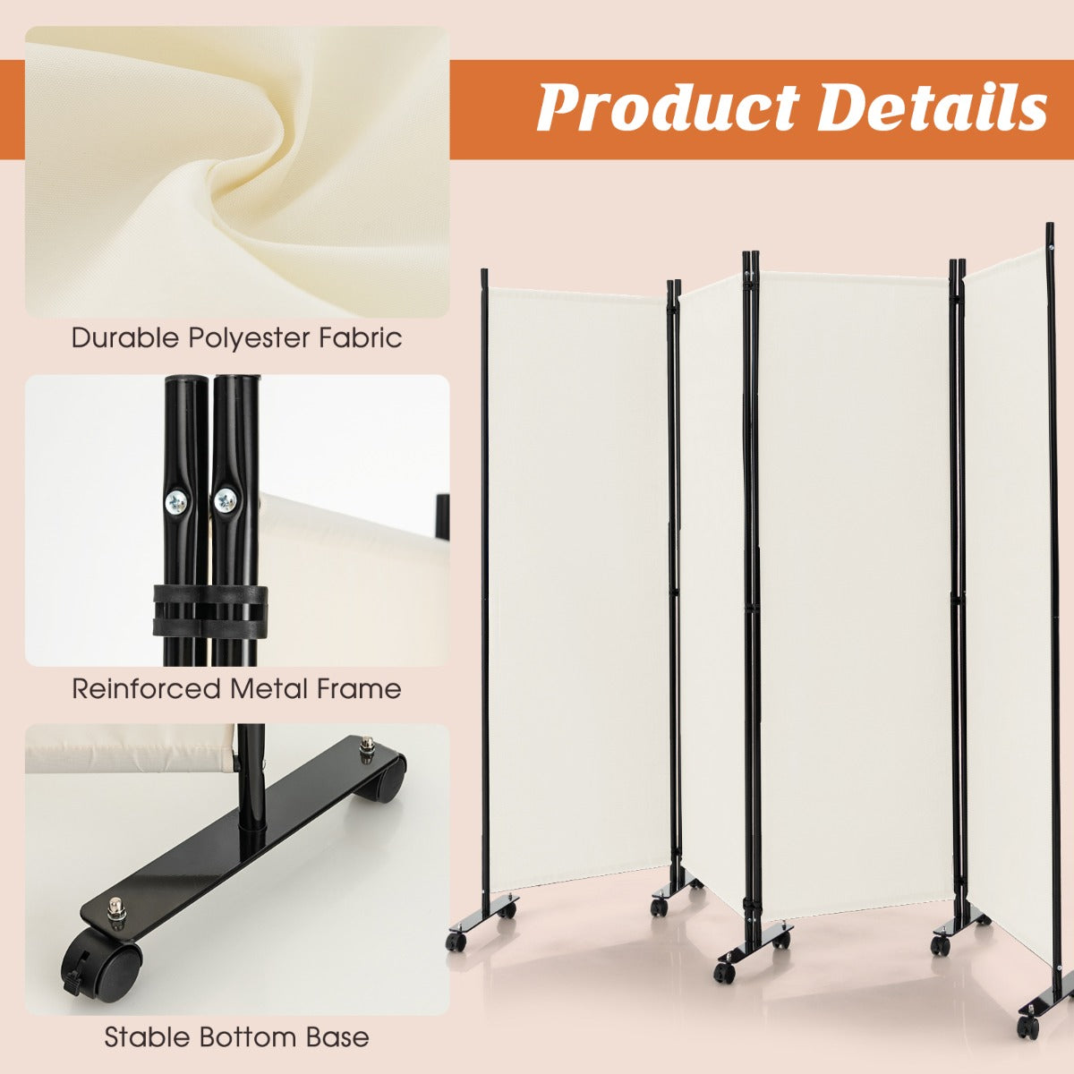 Do you want to have a private space of your own in your room? The 4-panel room divider would be worth considering. The combination of premium polyester fabric and metal frame means great sturdiness, excellent durability and a long lifespan....View More