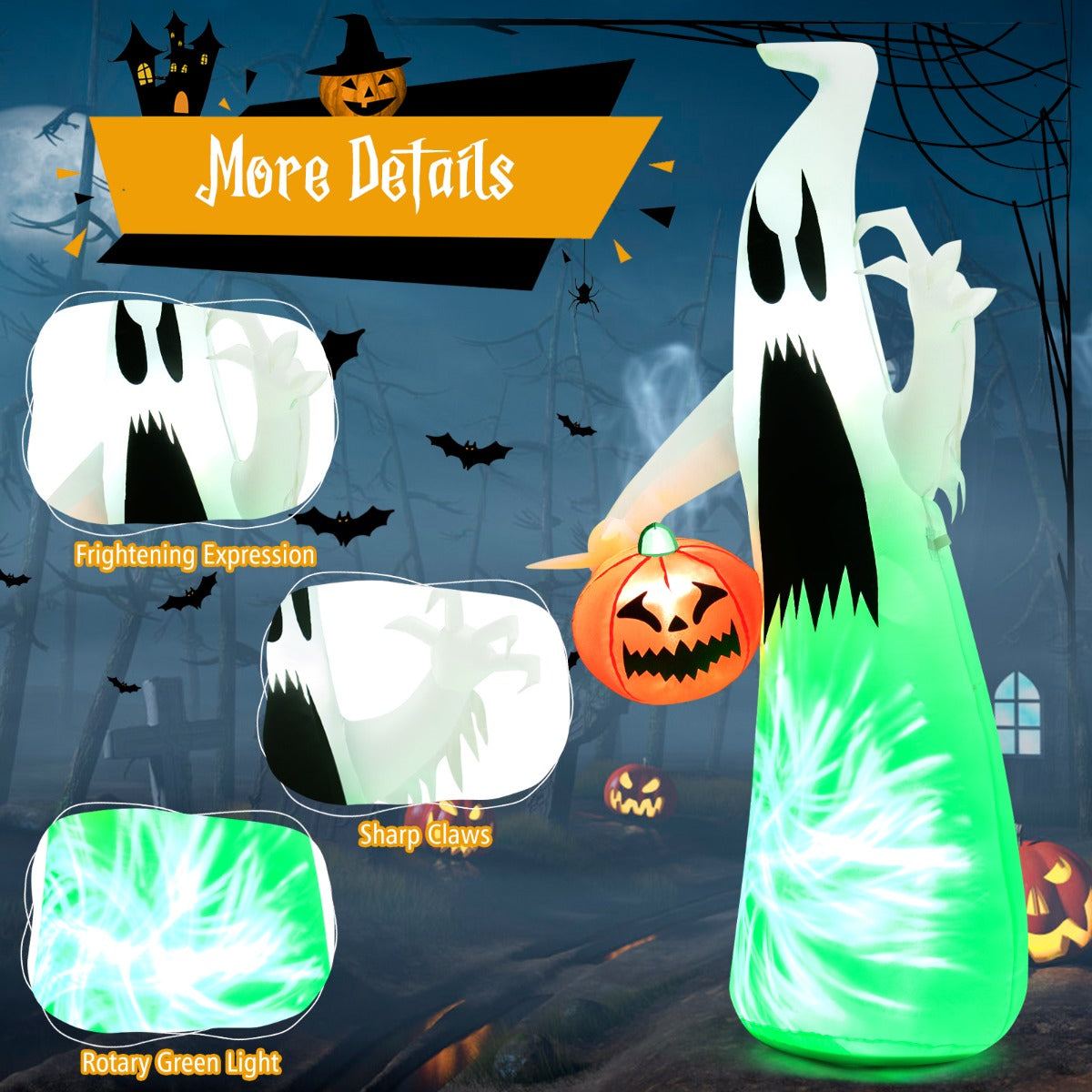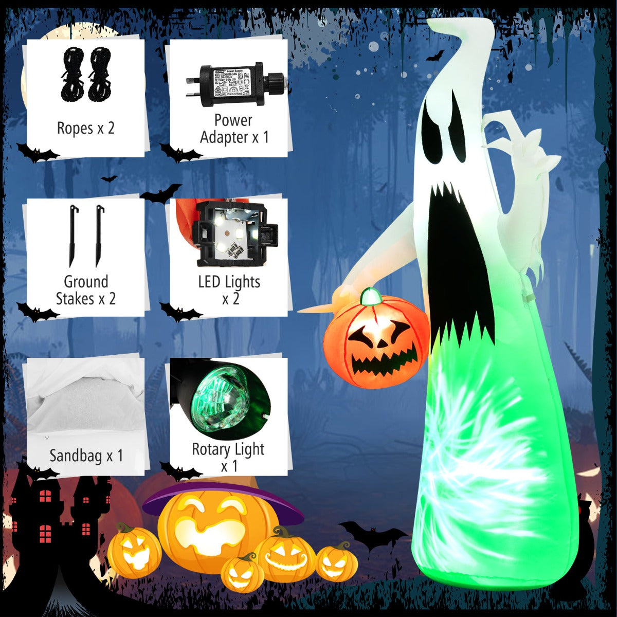 Aussies Market 172 CM Inflatable Halloween Hunting Ghost with Built-in LED Light