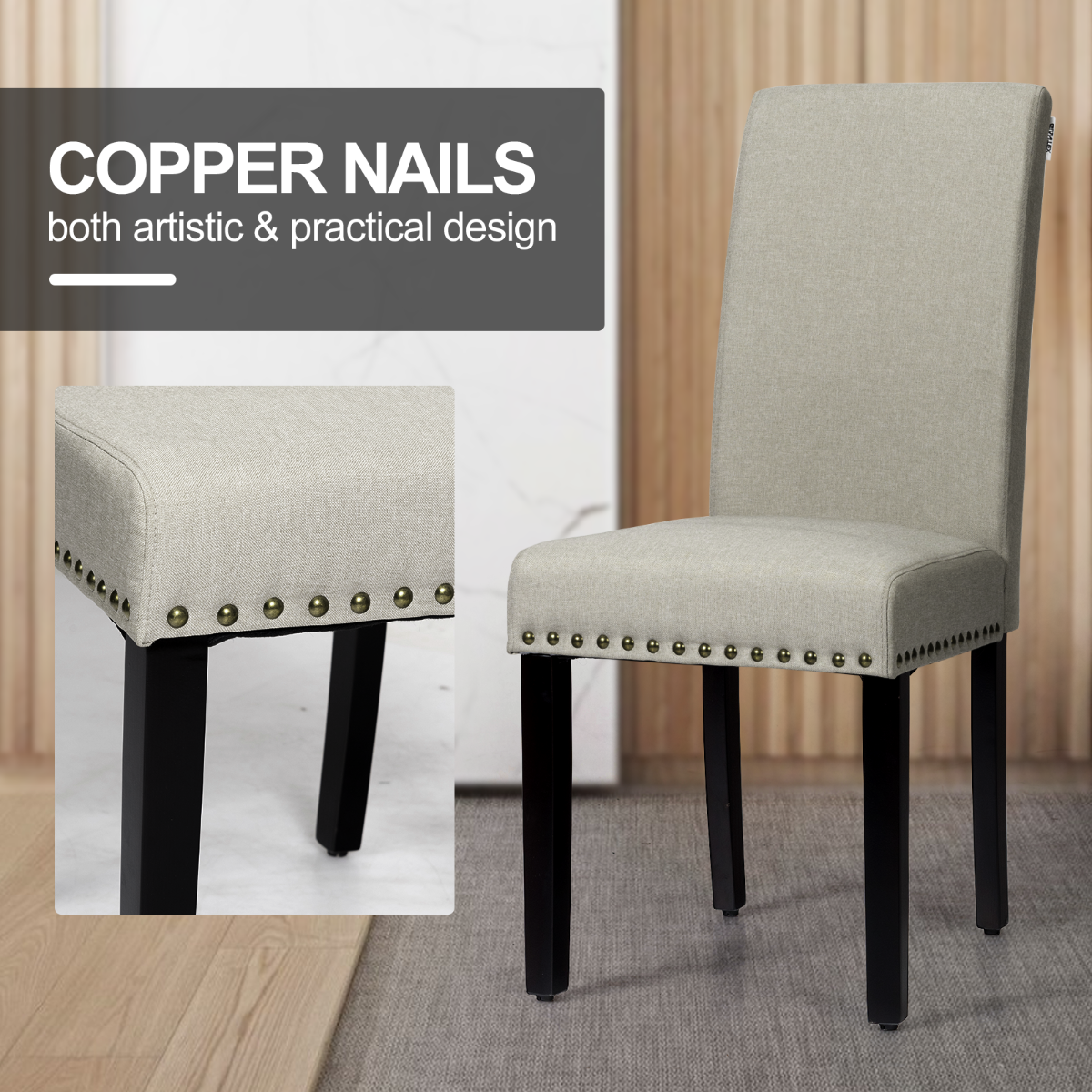 High-Density Sponge & Linen Fabric: These 2 dining chairs are filled with a high-density sponge to offer optimal softness and elasticity. And serpentine springs under the seat make chairs more resilient. Besides, covered with breathable linen fabric, these dining chairs will provide maximum comfort.