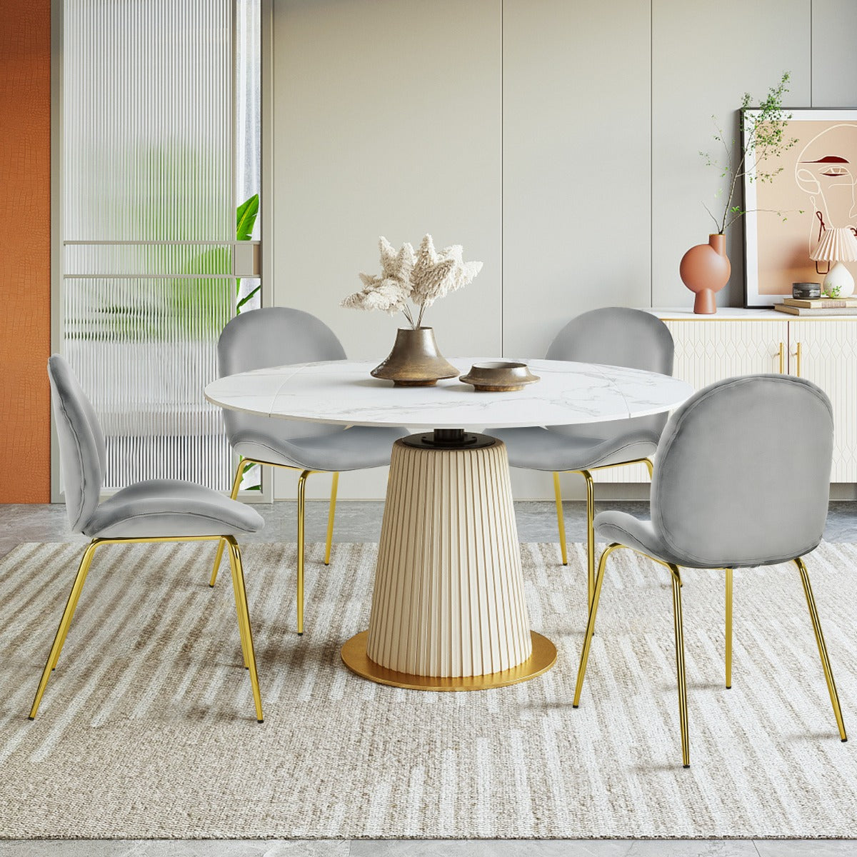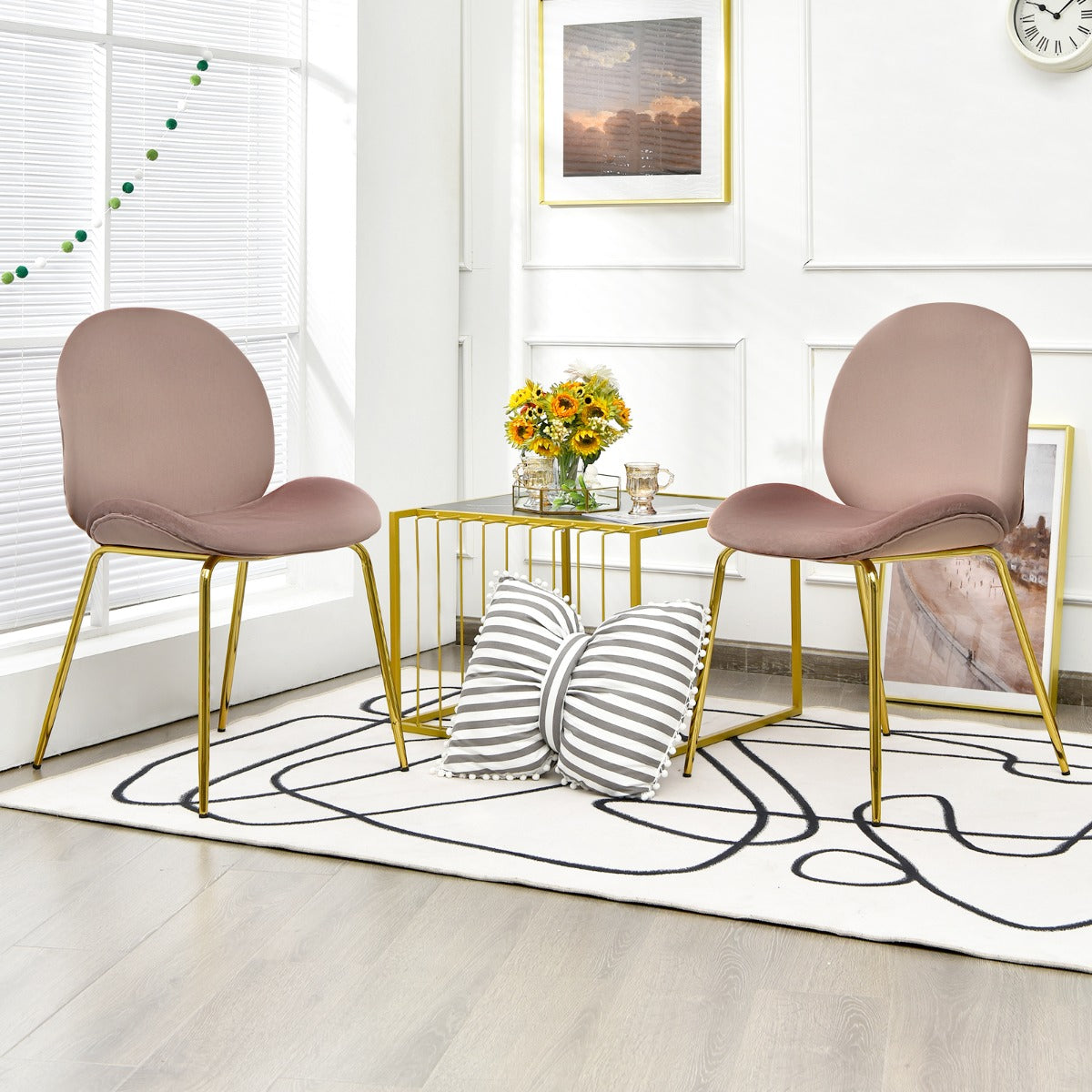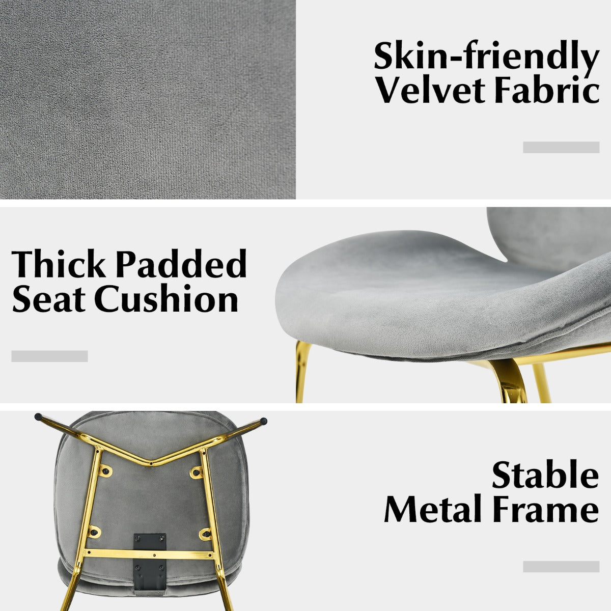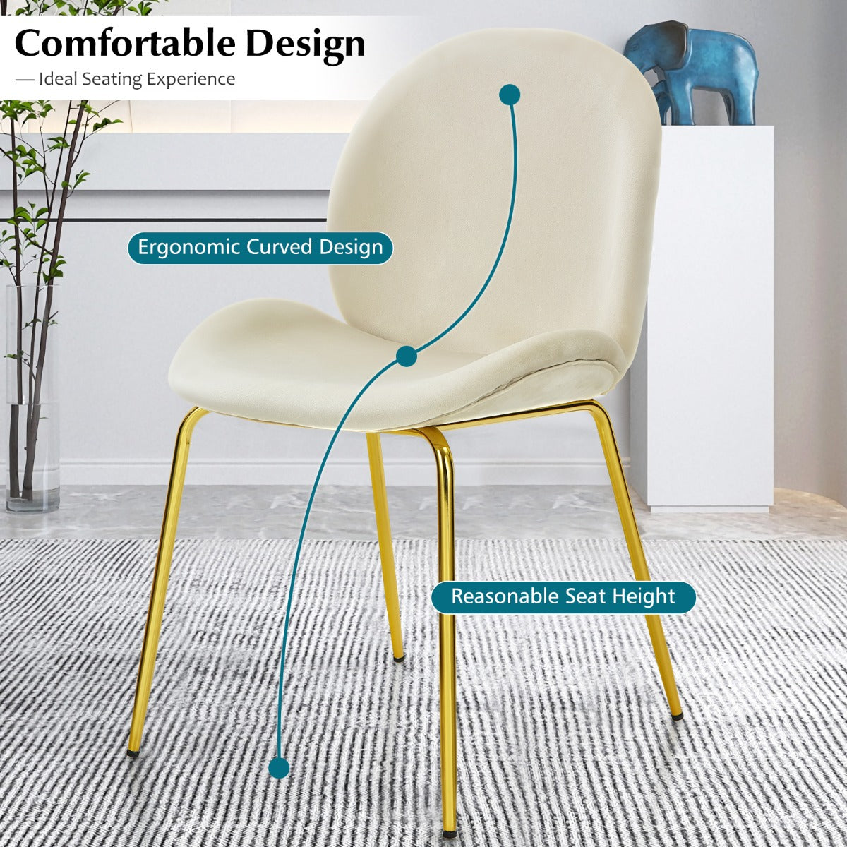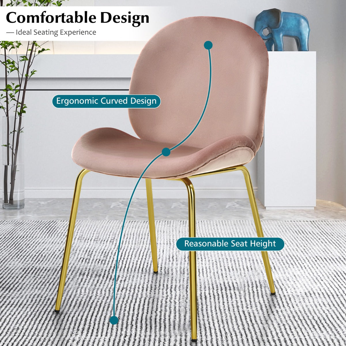 Mid-century Style & Wide Application: The special shape with skinny golden legs makes this set of chairs a pop of luxury to your kitchen, dining room, dressing room, or living room. This leisure chair can serve as a makeup vanity chair, dining chair, side chair, and so on.