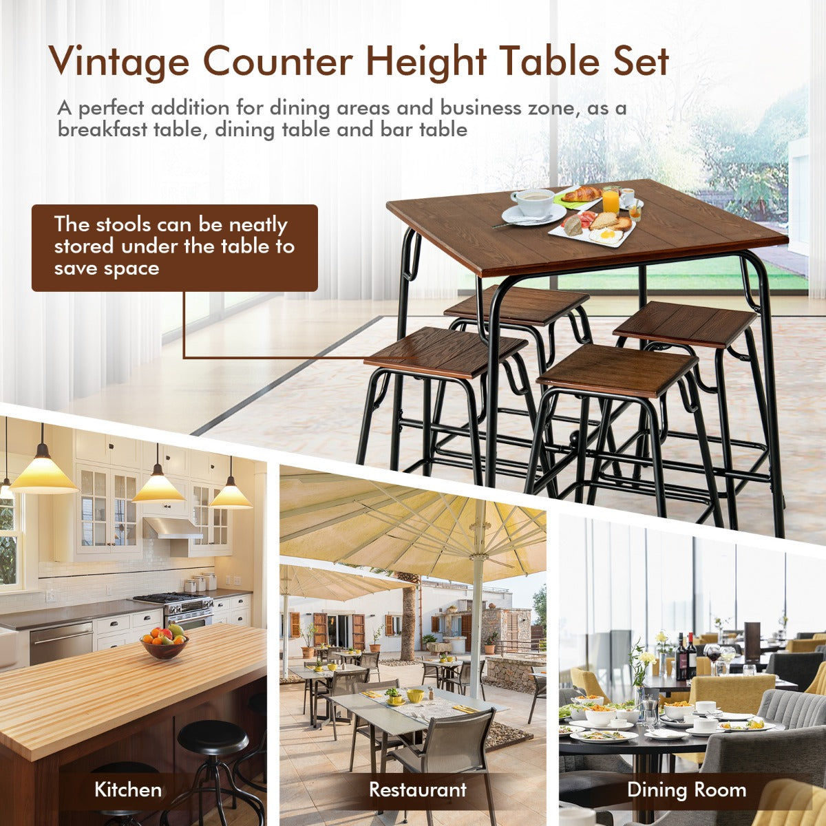 Aussies Market 5-piece Bar Table Set with Backless Stools for Apartment