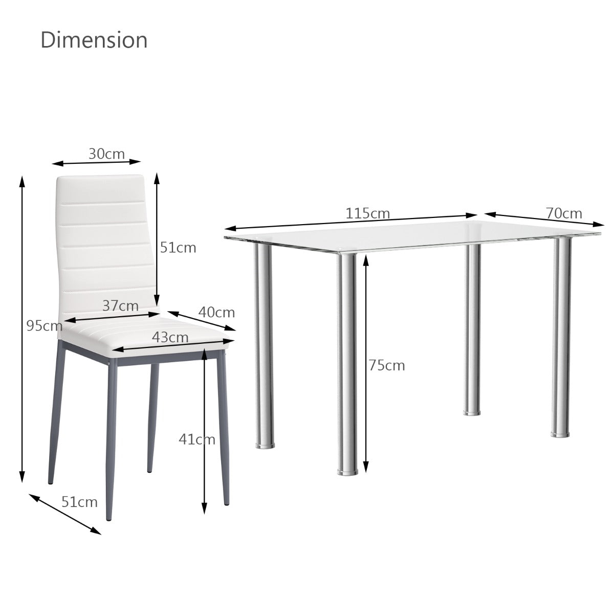 Dimension of each chair: 51 x 43 x 95cm (L x W x H)