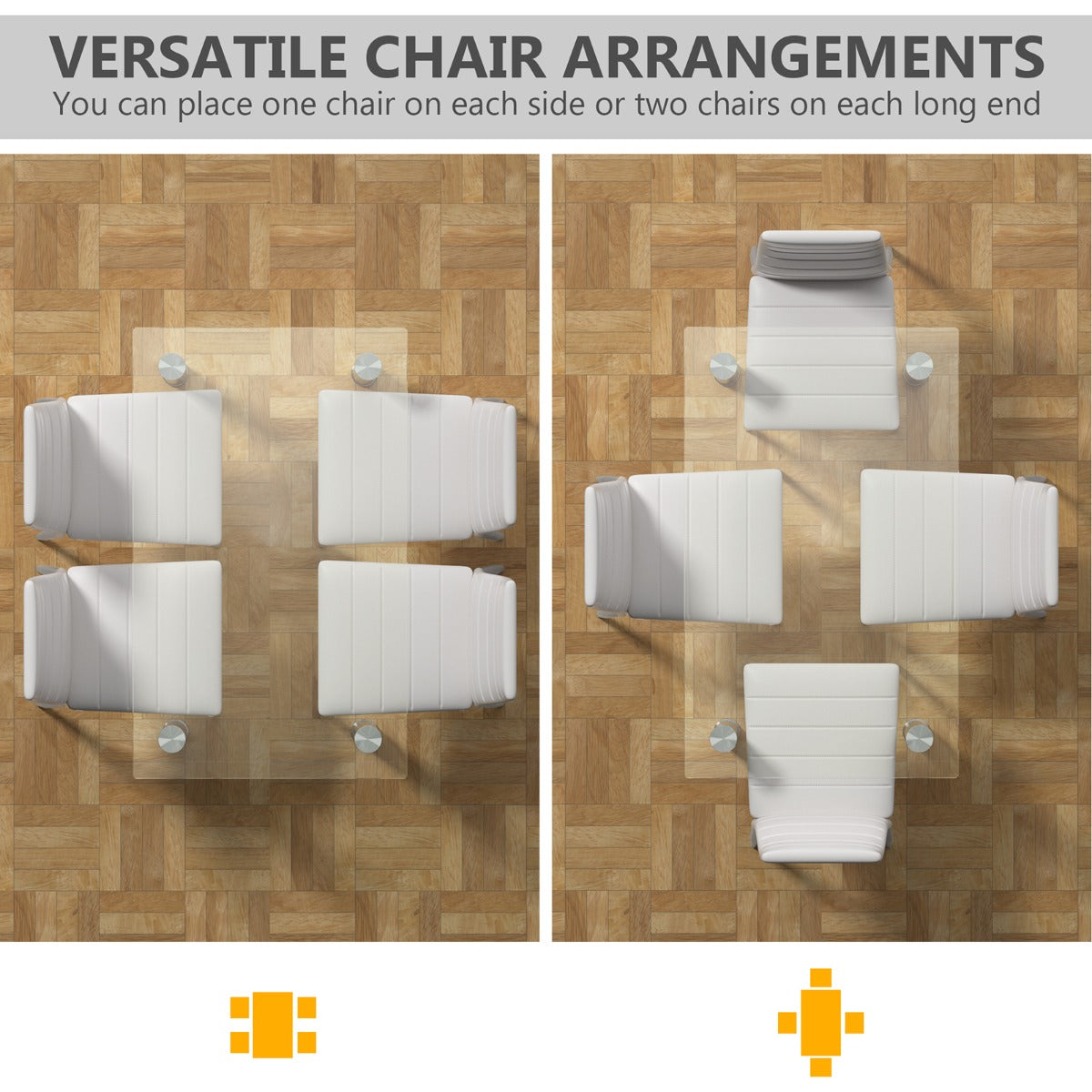 Durable Glass Table: With sturdy tempered glass tabletop, this dining table has excellent resistance of heat, anti-scratch and shock to stay with you for years. The table legs are made of high quality stainless steel, ensuring the stability and durability of the table. And the anti-slip feet also play an important role in preventing wobbling.