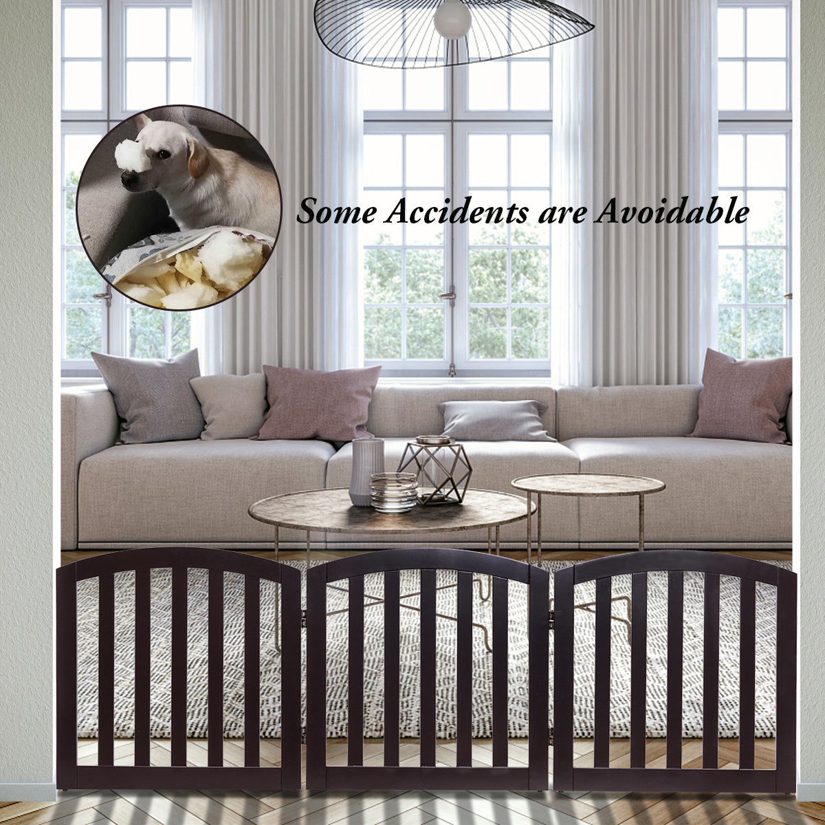 Good Pet Accessory: The pet gate provides a safe and efficient way to confine your pets while offering a decorative and handsome touch to your home or office. This tall height gate allows adults to step over the barrier if needed. It is great for blocking hallways, stairways, doors, and entryways.