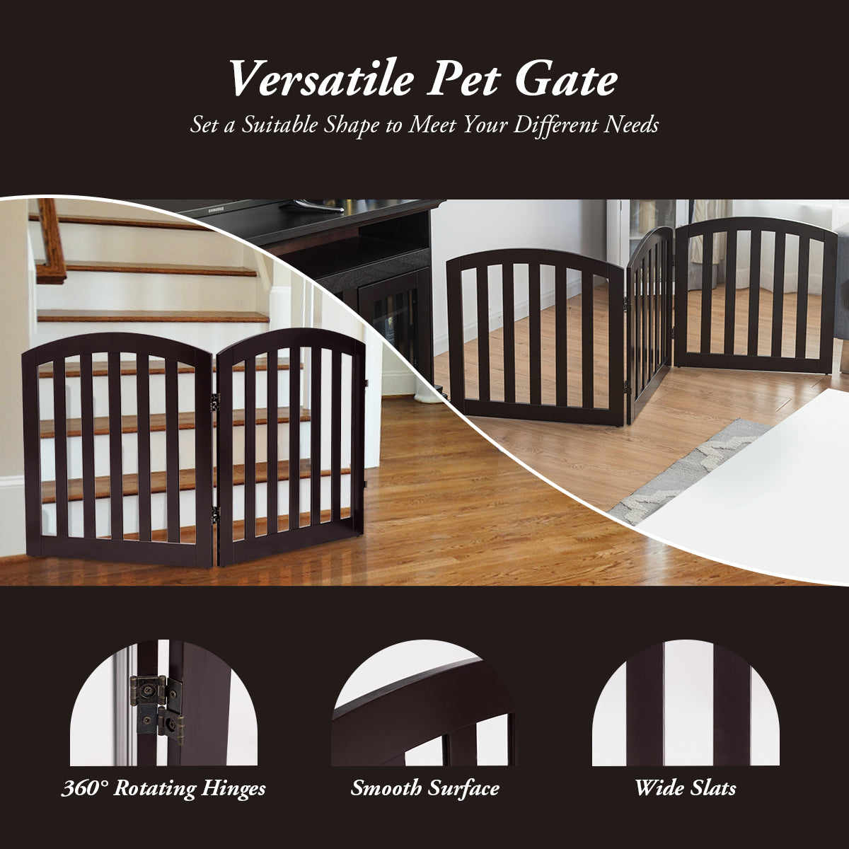 Freestanding Pet Gate: The panels are connected and secured together with sturdy hinges which also can rotate 360° for unlimited configurations. Interconnecting panels allow the gate to fold out into a Z-shape configuration to block off select areas of your home such as your doorway, hallway, staircase and more.