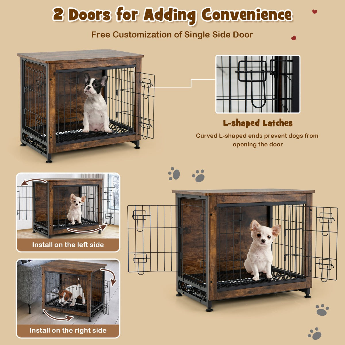 Elegant Home Furniture: Thanks to the industrial wood grain table top and simple metal frame, our dog crate can not only serve as a resting place for your puppy but also become an elegant decor in your home. It can be used as a side table next to a sofa or bed, which can accommodate computers, snacks, potted plants, etc.