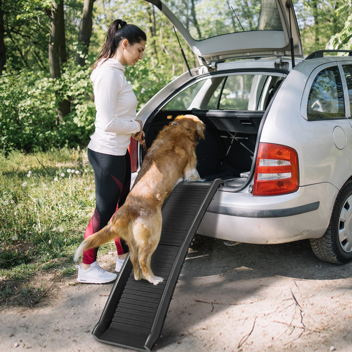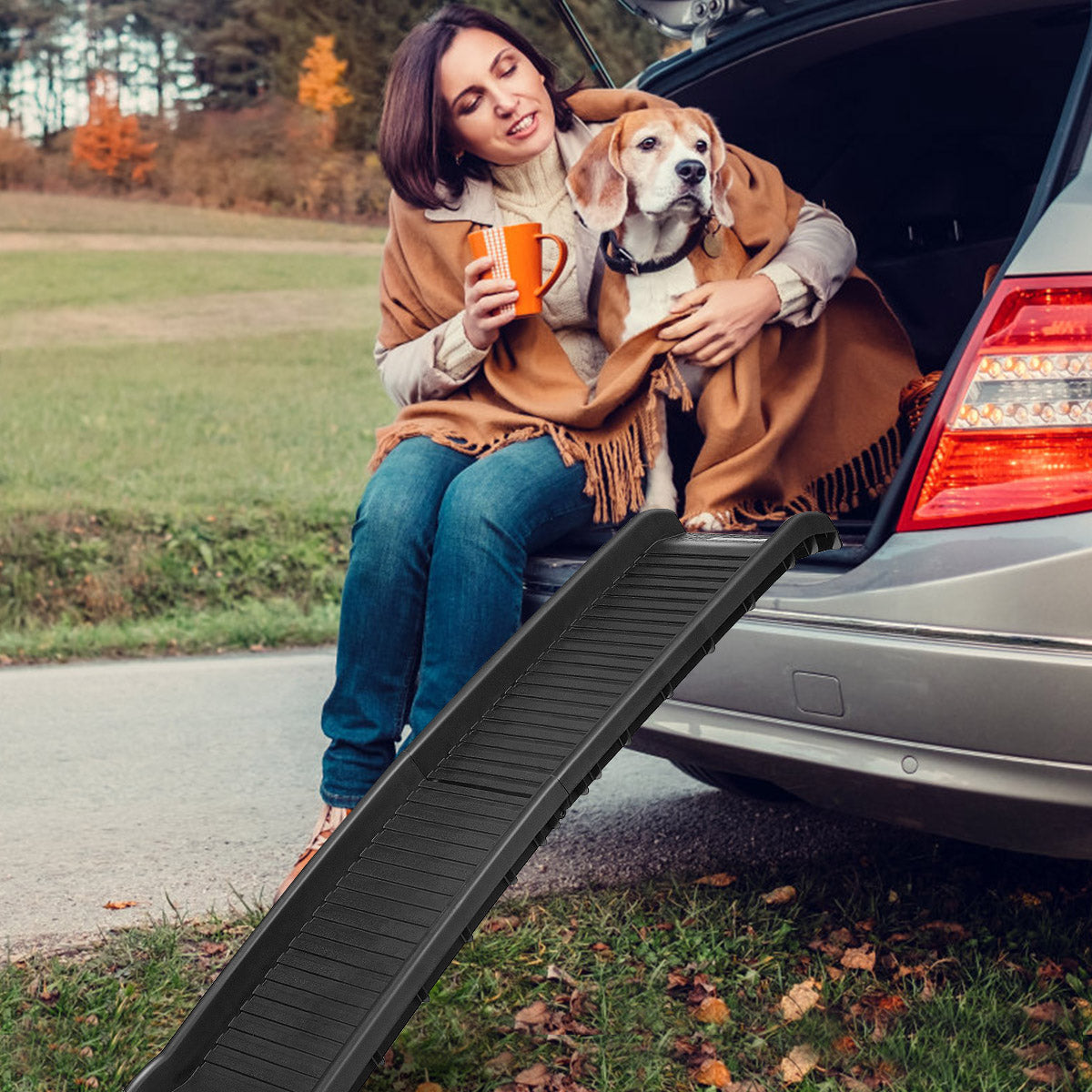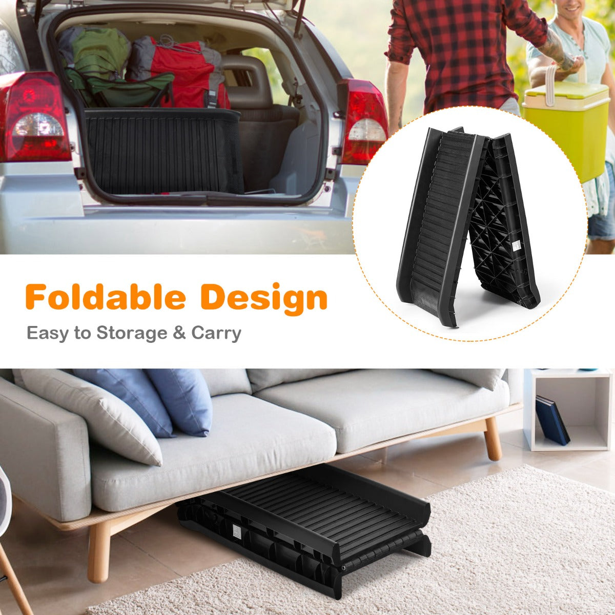 Ready to Go: With the folding pet ramp, you can commence adventurous journey with your best friend. They can easily get in or out of your car, minivan or SUV all by themselves, no longer worrying about their safety for being alone at home.