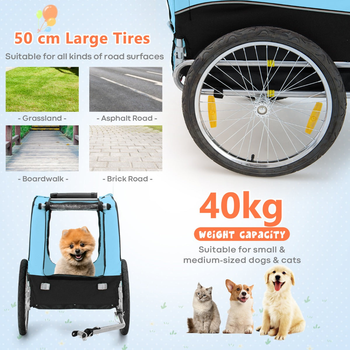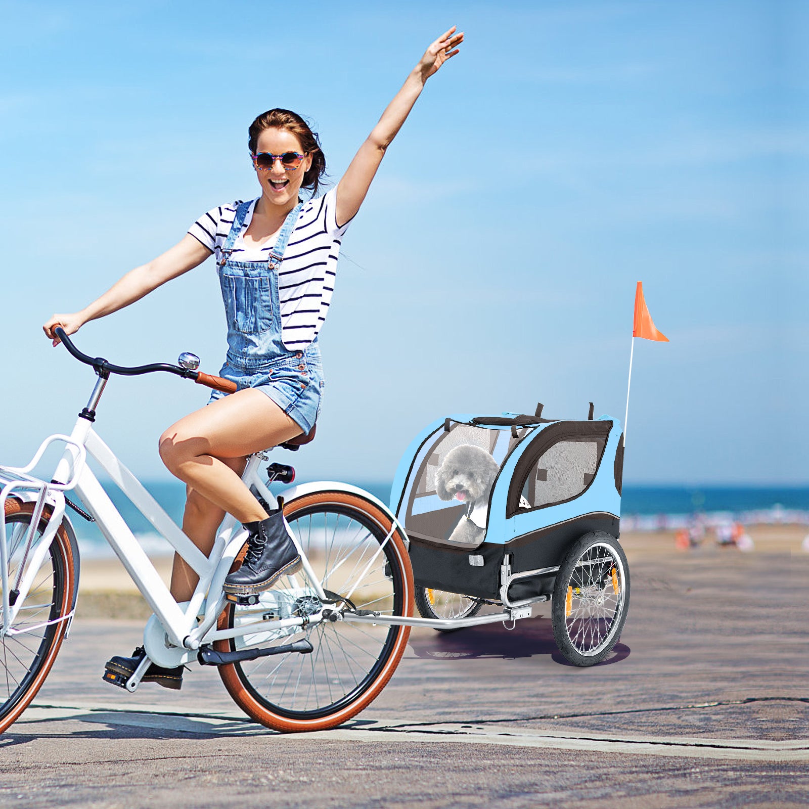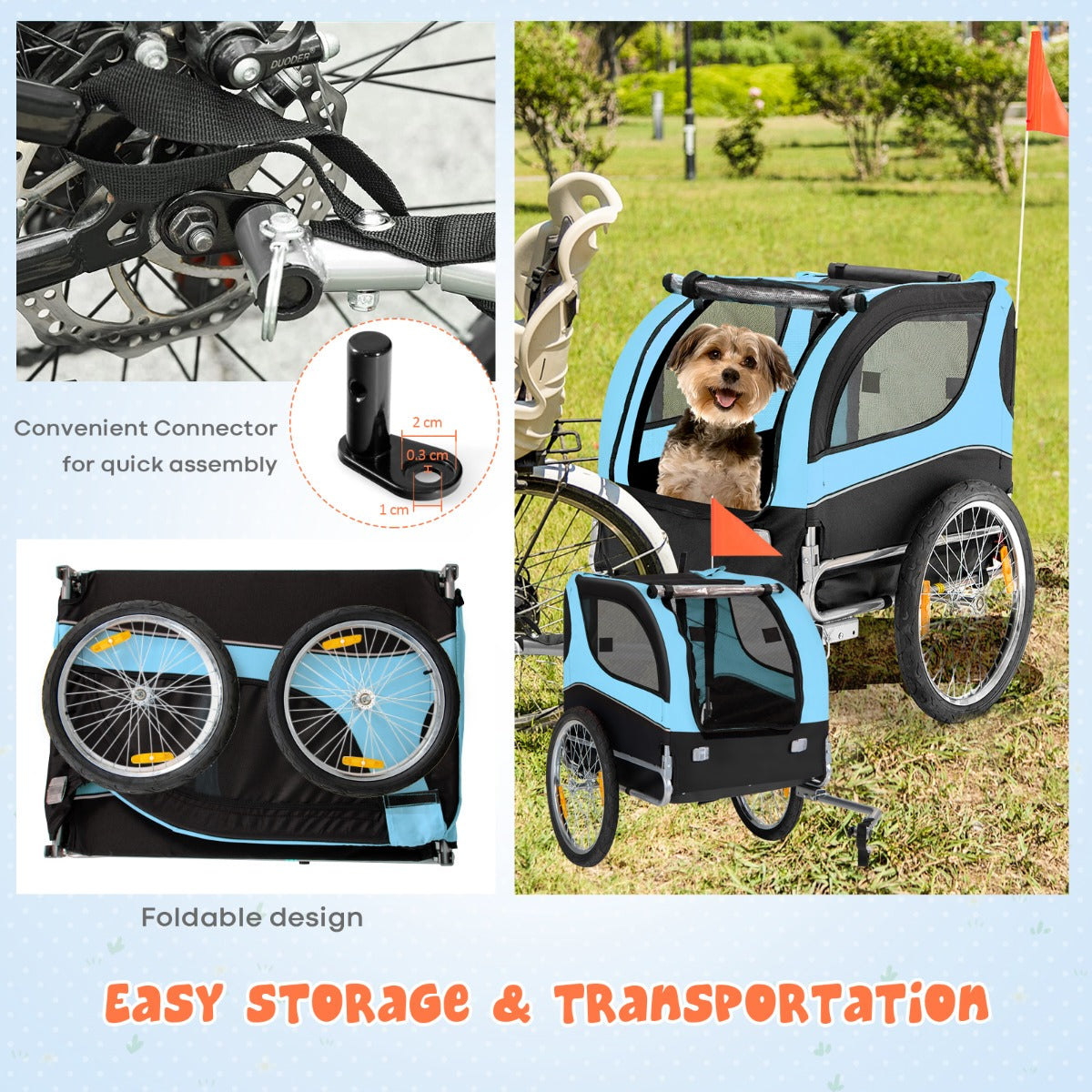 Easy Installation and Foldable Design: The dog bike trailer can be easily connected with a bike by a convenient connector. And it can also be folded into a compact size for easy storage when not in use. Other than that, it features two 20'' large wheels ensuring smooth riding, which is suitable for all kinds of roads.