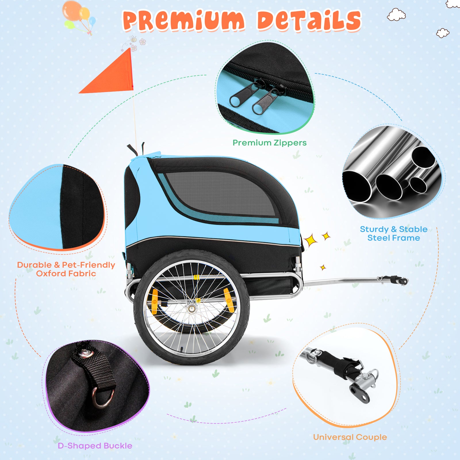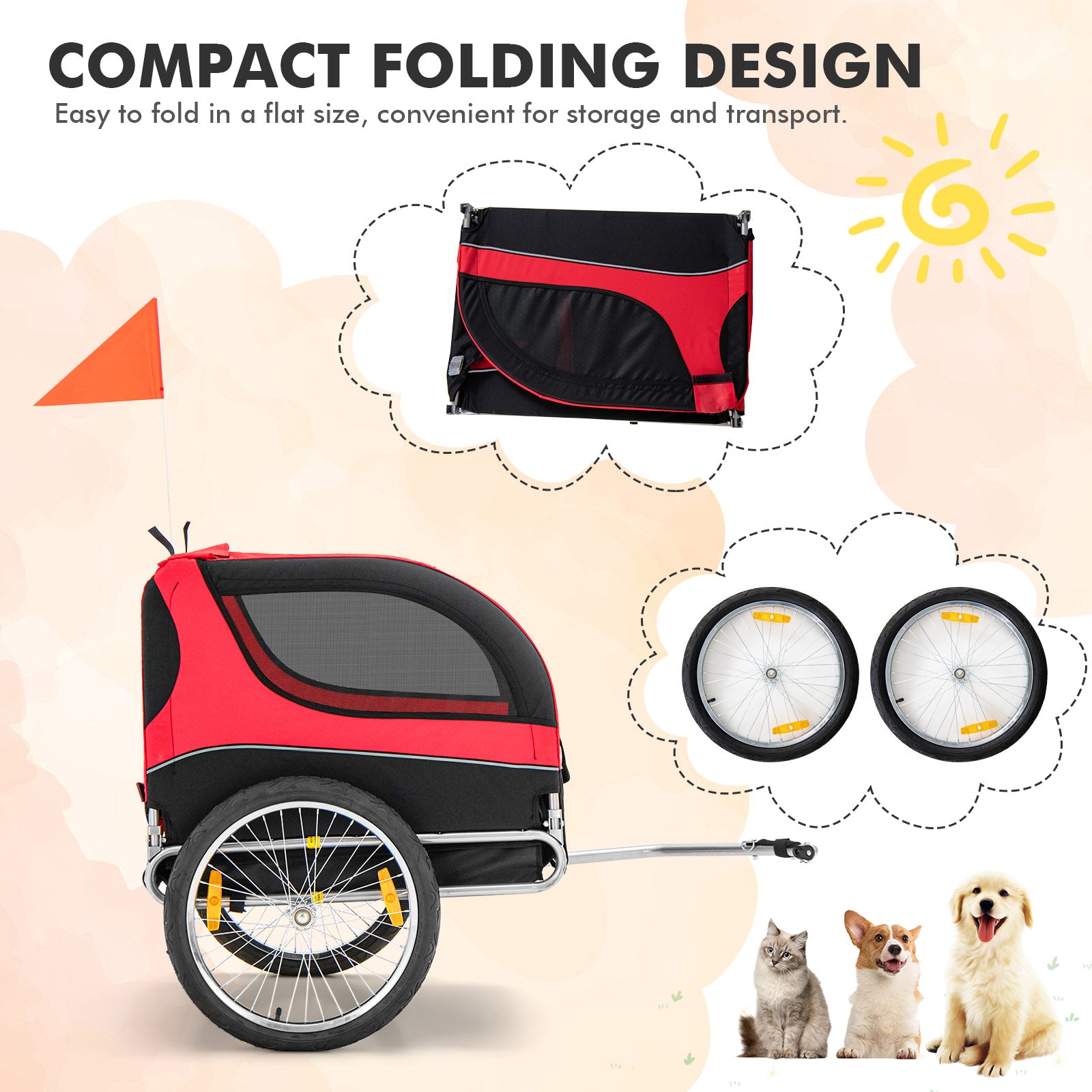 Safety Design: This bike trailer for dogs is designed with a red safety flag and 8 reflectors with bright colors, which improve visibility during night biking. Moreover, the interior features a D-shaped buckle for connecting with your dog leash, avoiding jumping out and ensuring road safety.