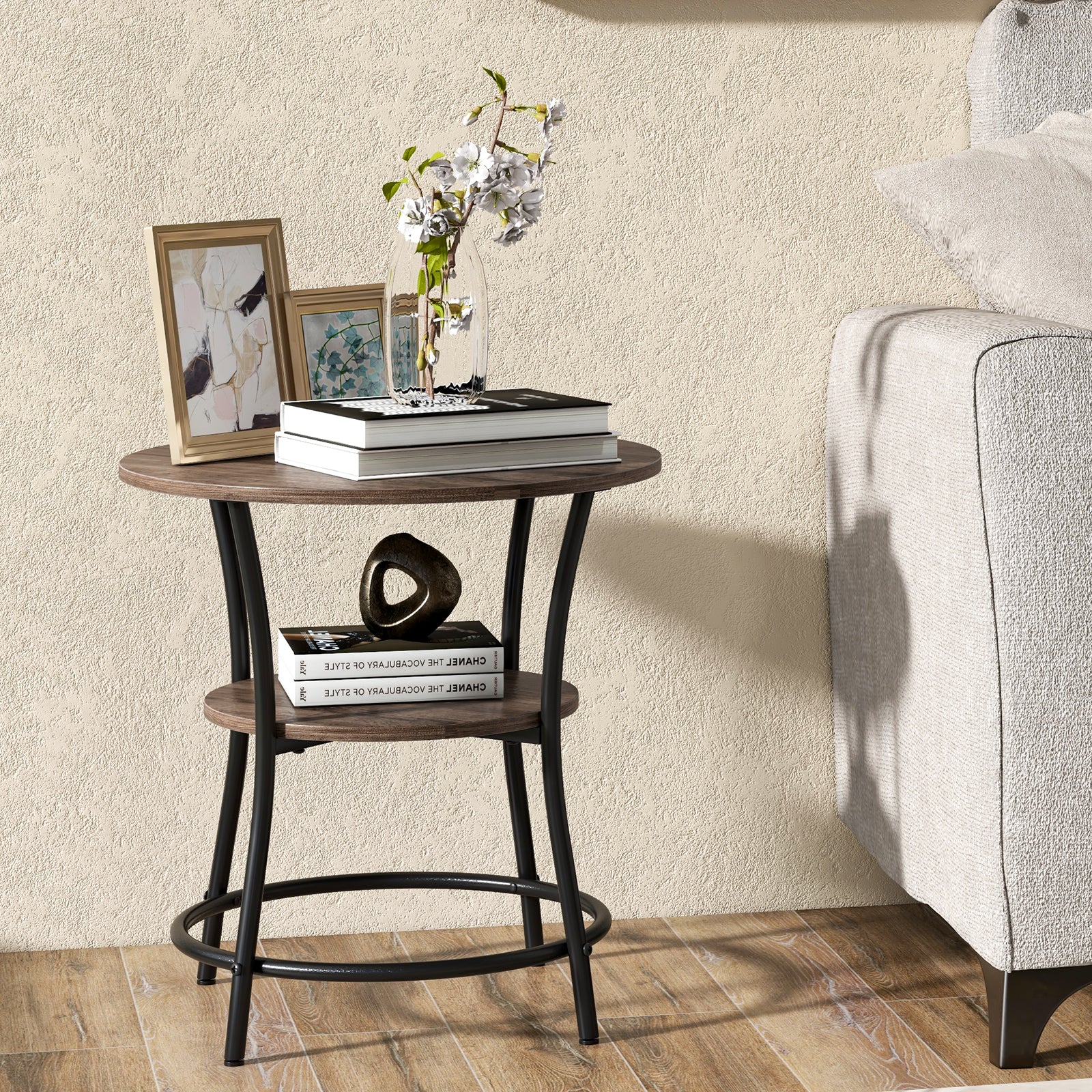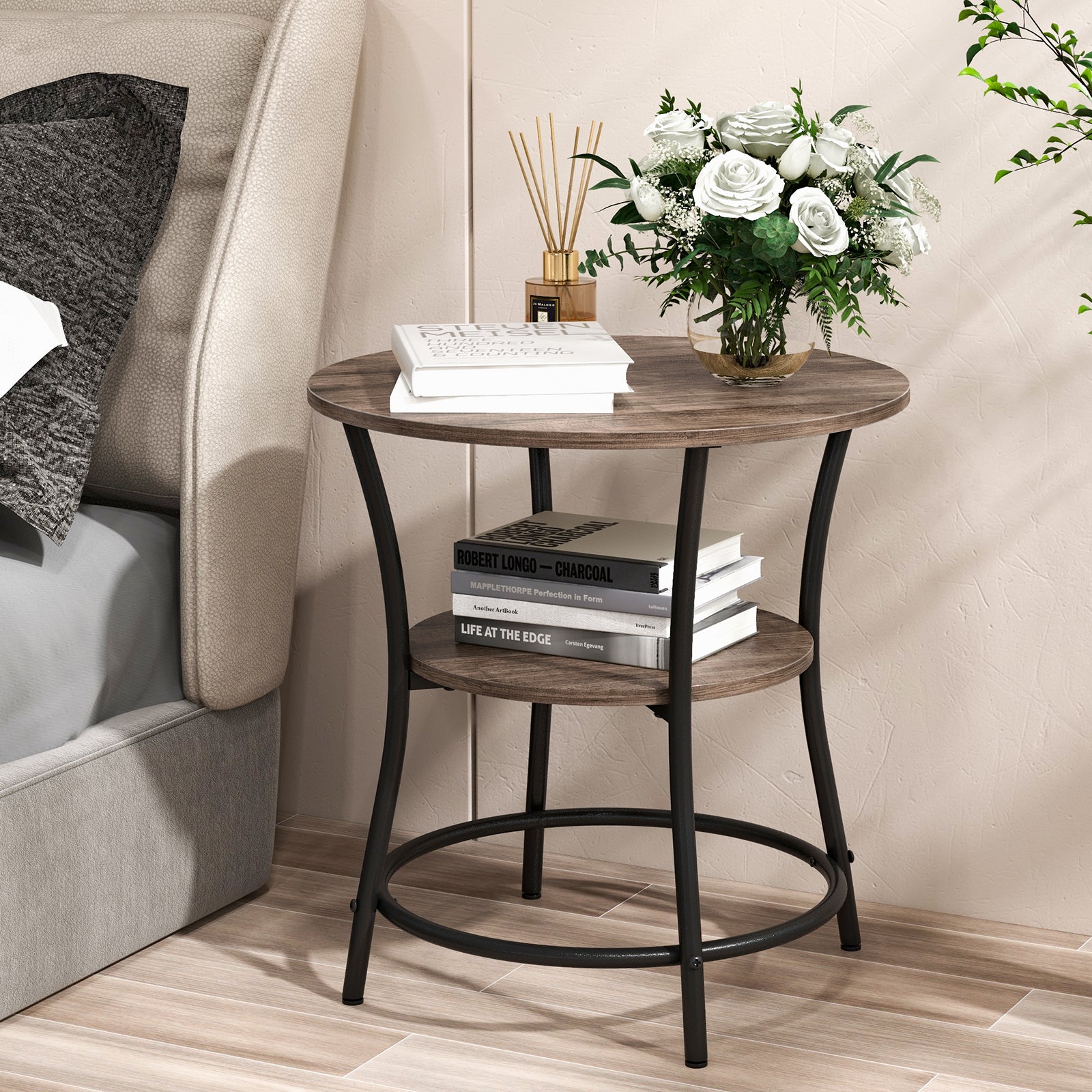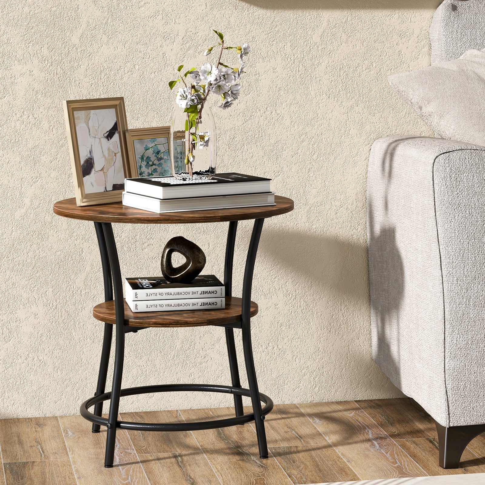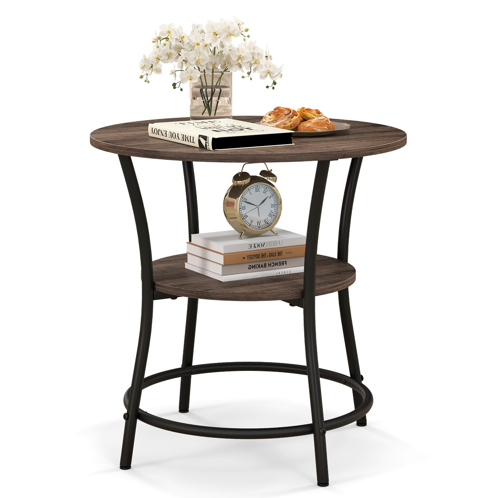 Aussies Market 2-Tier Round End Table with Open Storage Shelf for Living Room