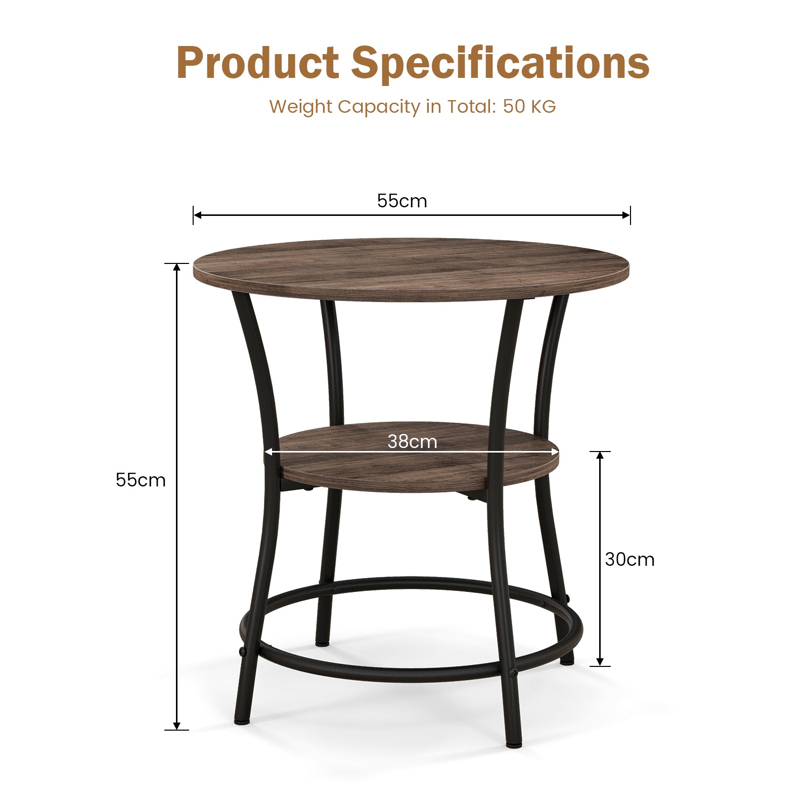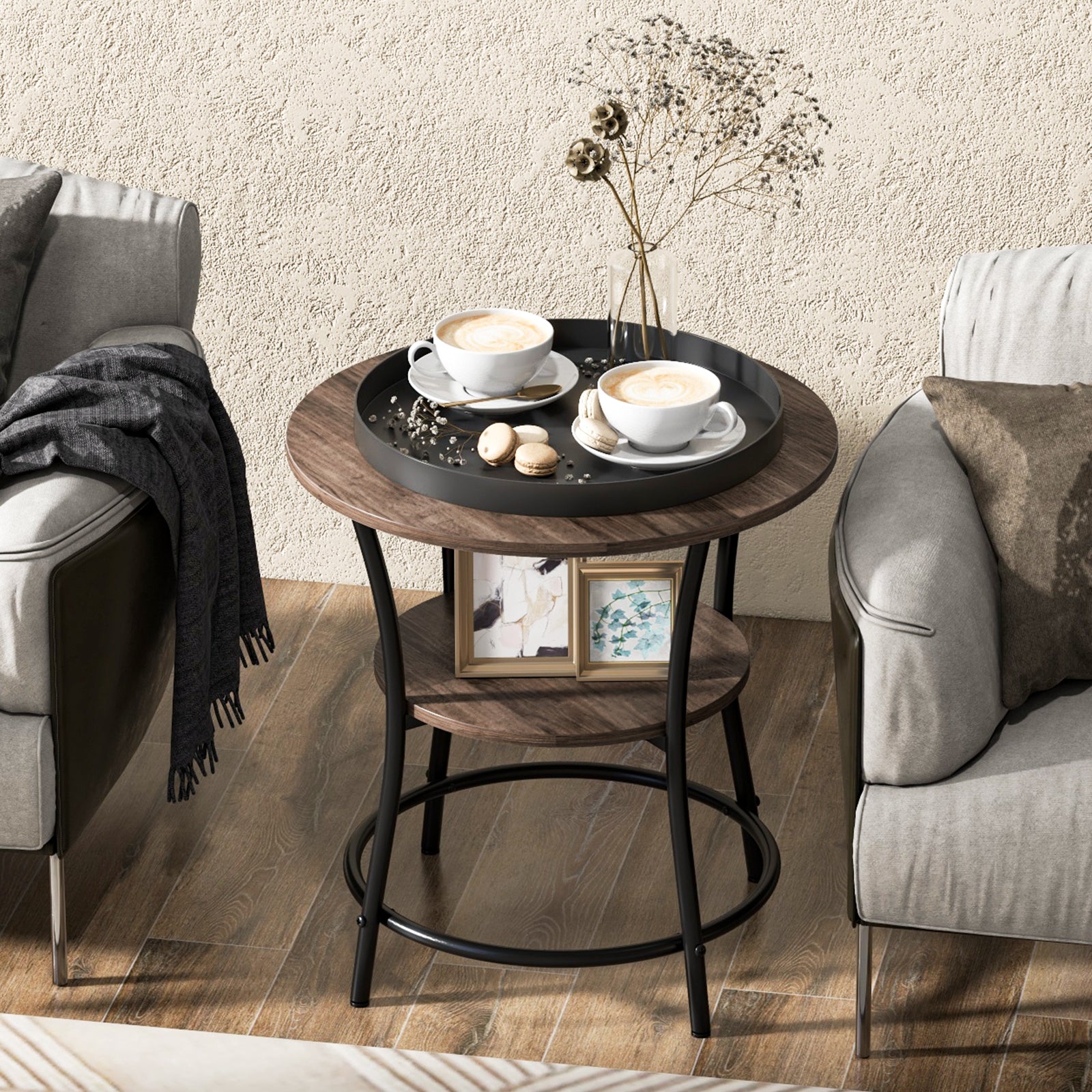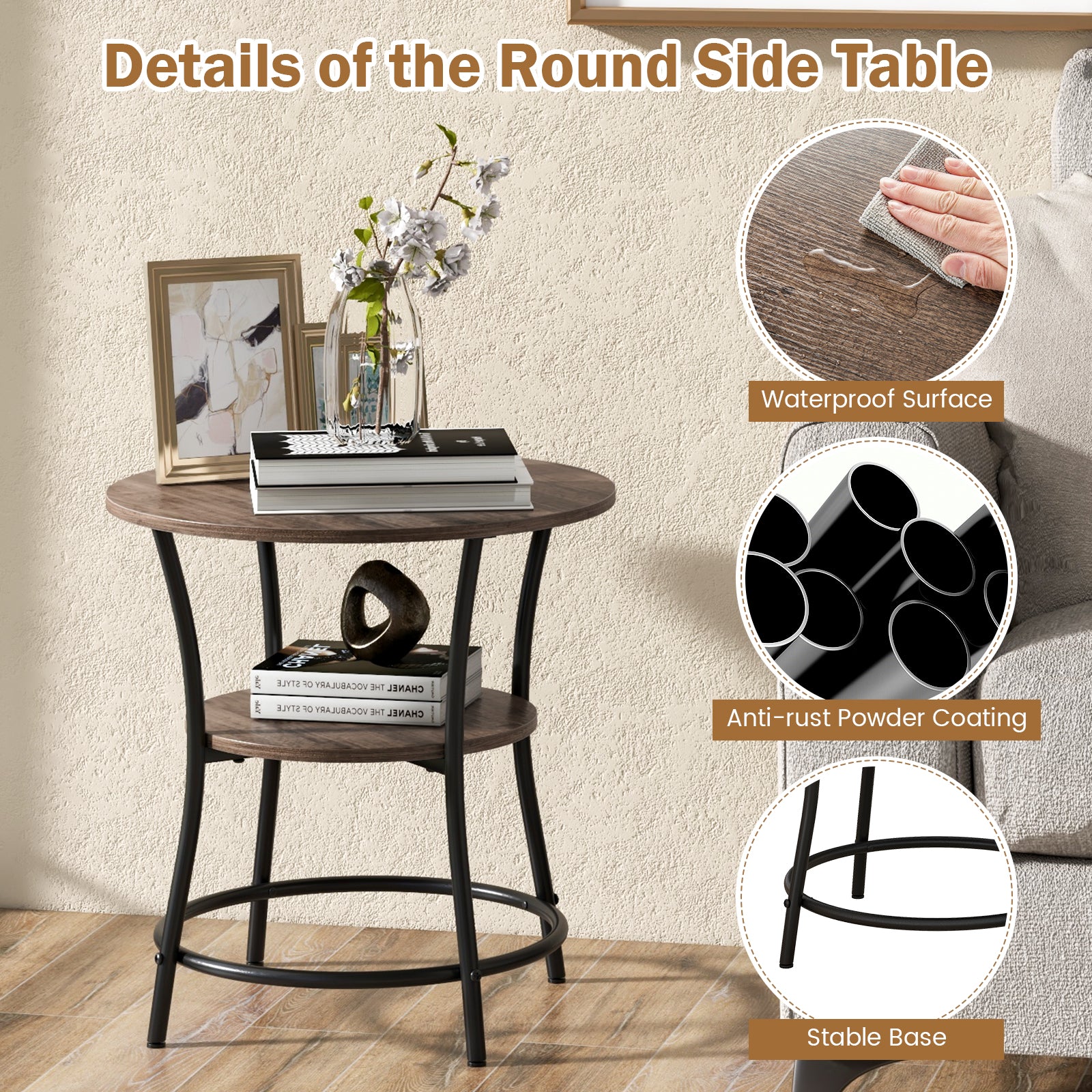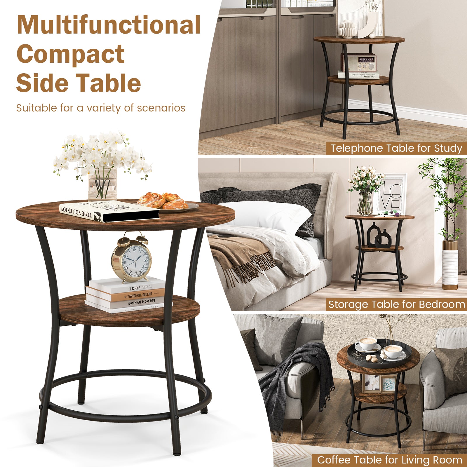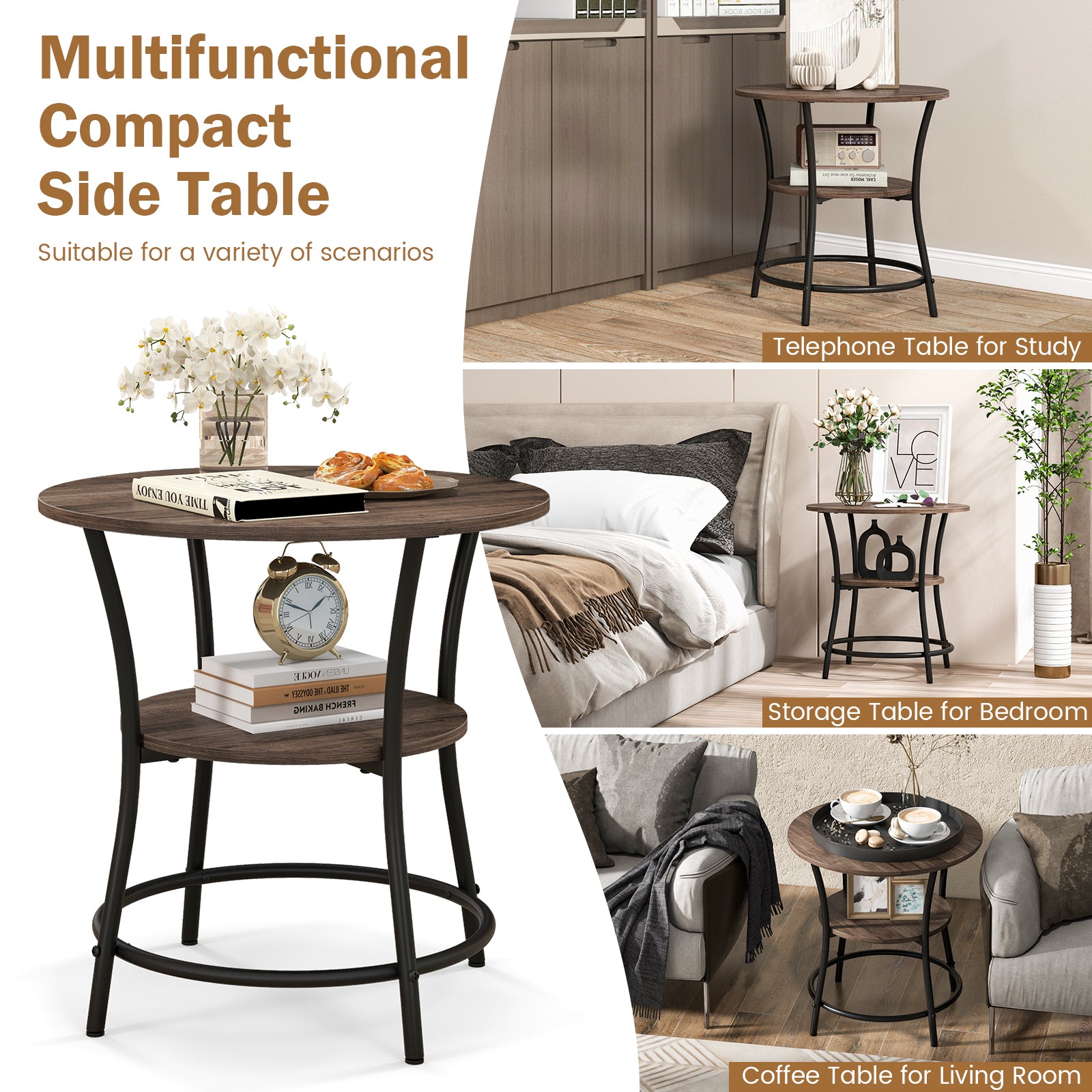 Aussies Market 2-Tier Round End Table with Open Storage Shelf for Living Room
