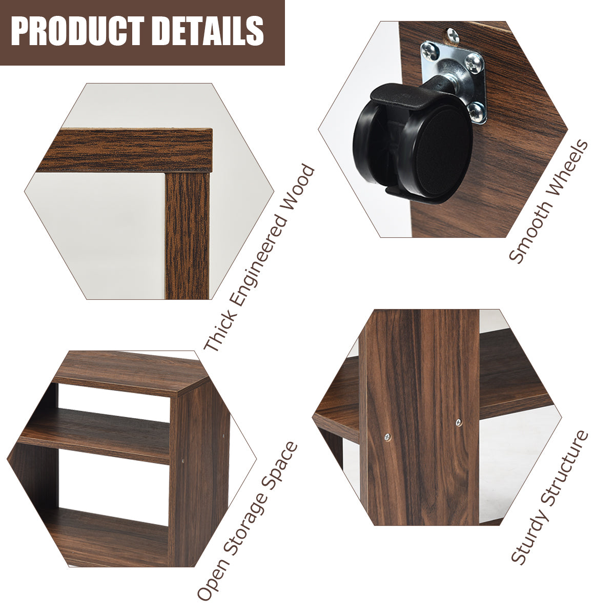 Easy to Move with Casters: Equipped with four silent and wear-resistant universal wheels, the storage rack is easy to move. Two of the wheels have brakes to prevent slipping, so that the table can be placed stably even on the slope.