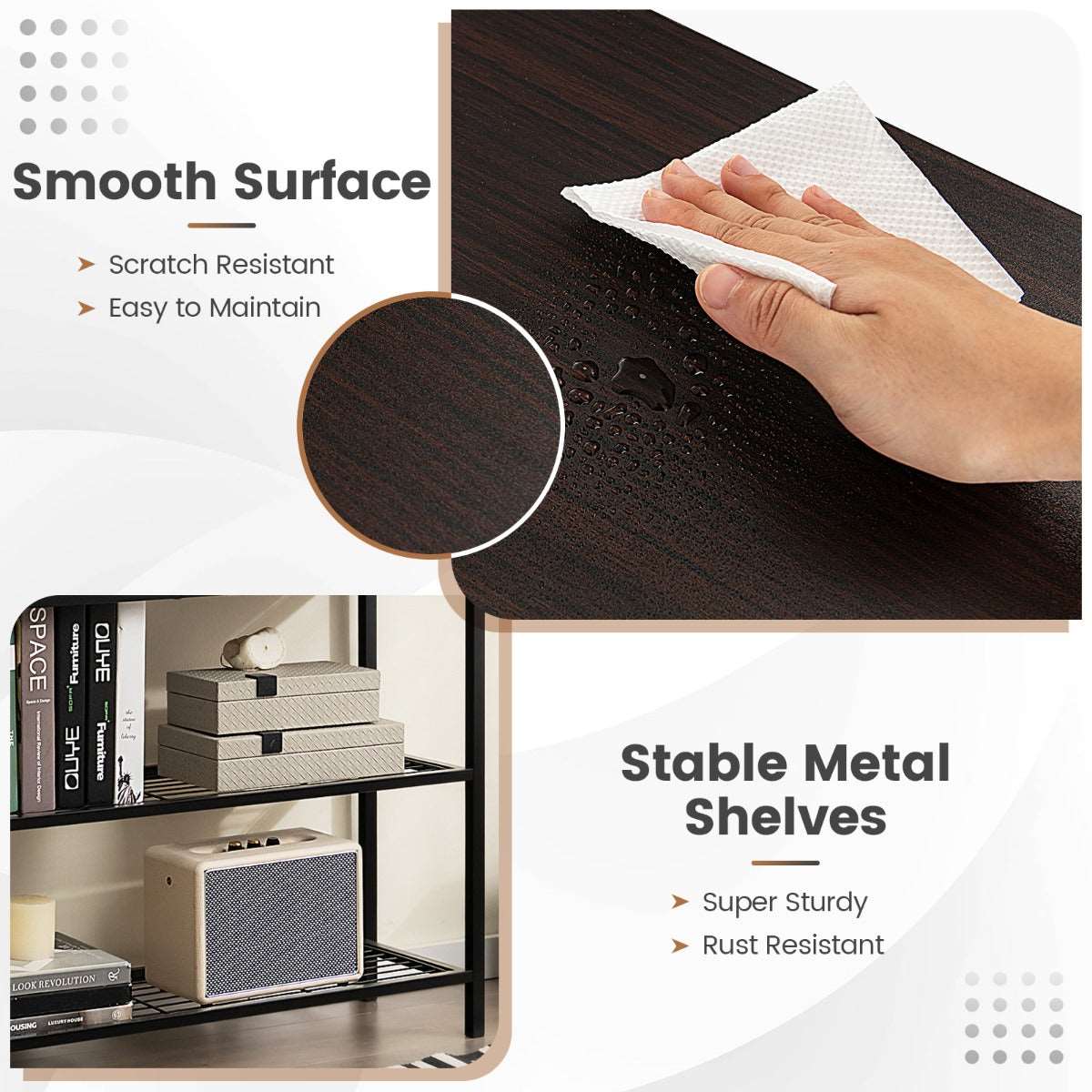 Simple Installation: Coming with all the required accessories and clear instructions, the entryway table is simple to put together, which saves much time and effort. And you just need a soft cloth for daily maintenance.