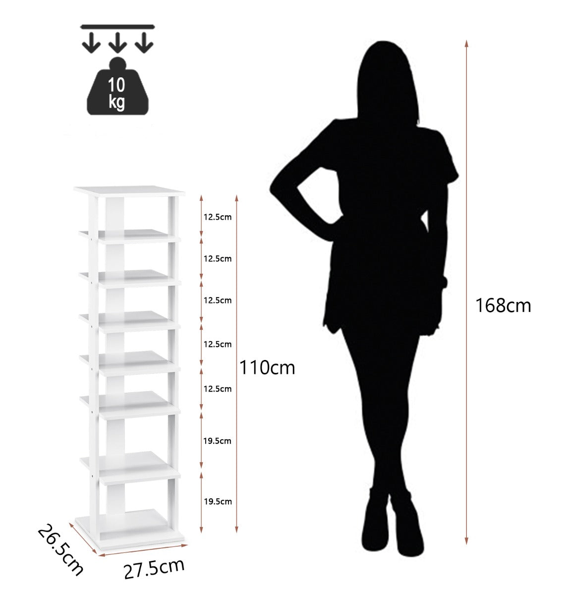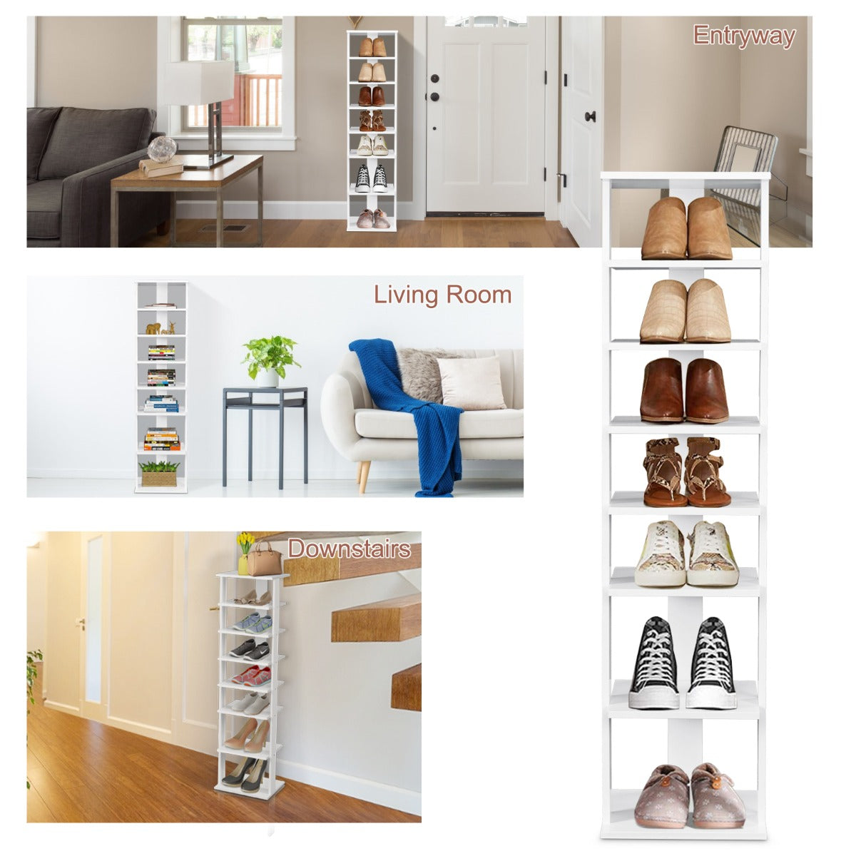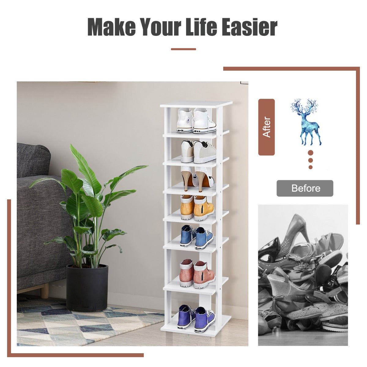 Aussies Market Wooden Shoe Rack with 8 Levels and Large Capacity for Entry/Living Room-White