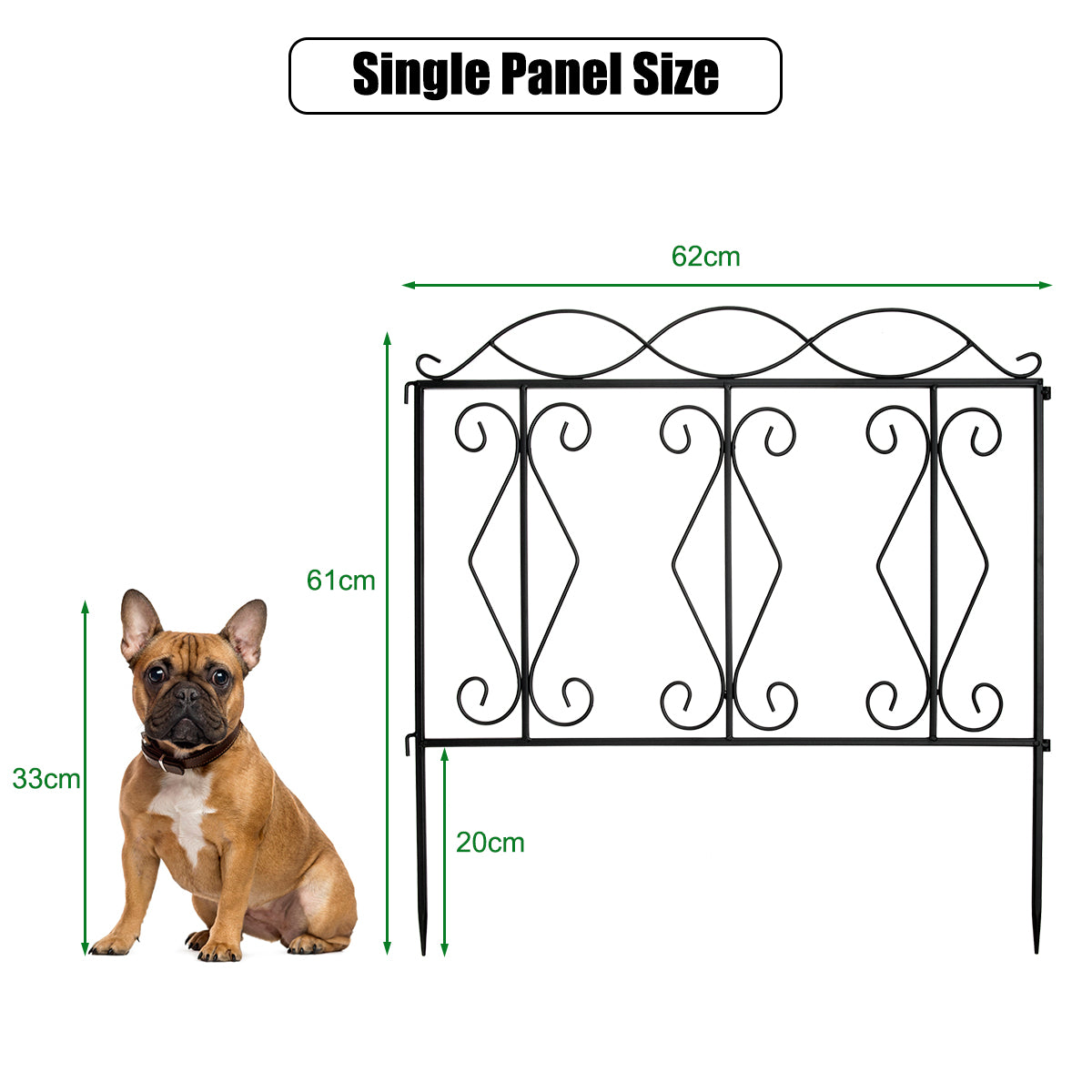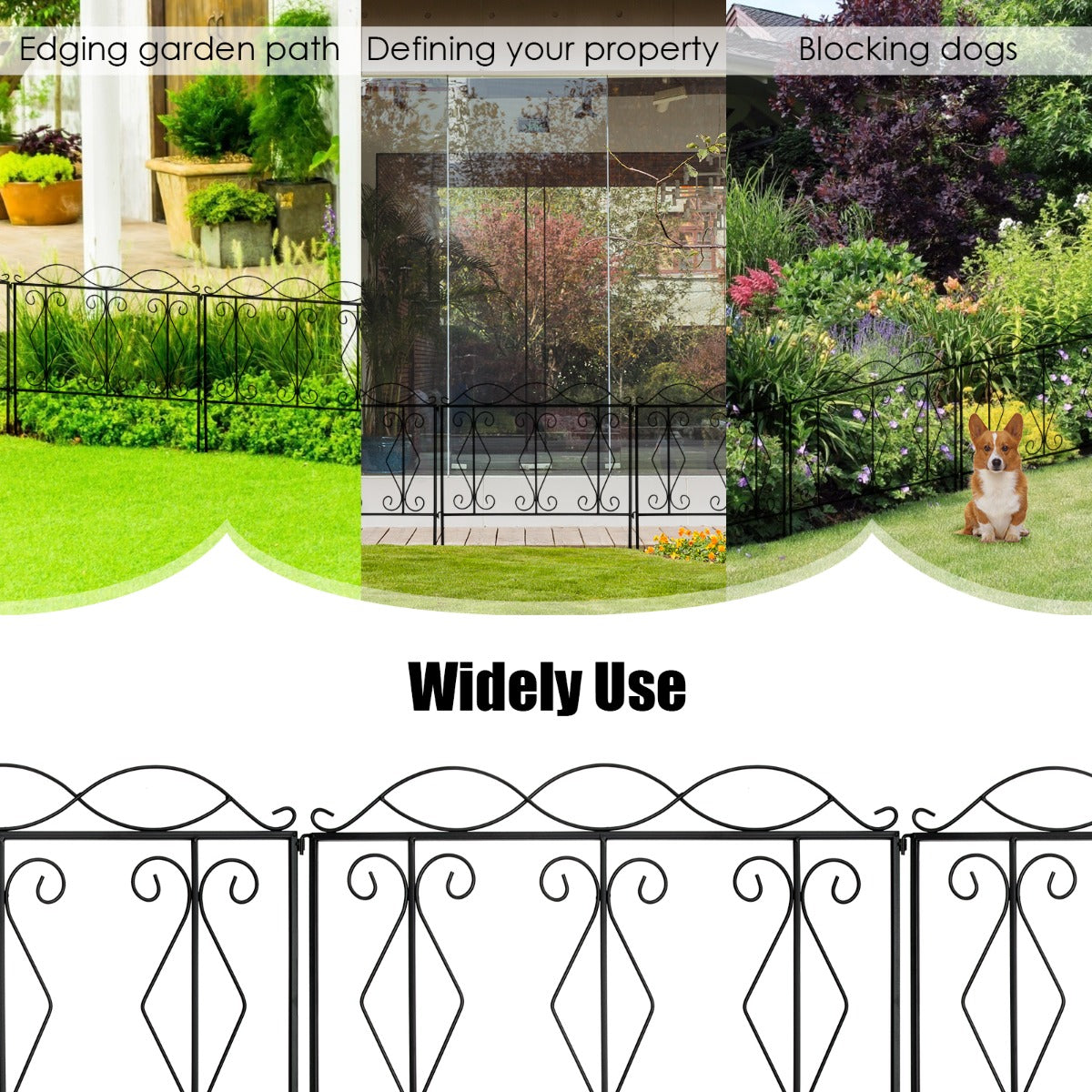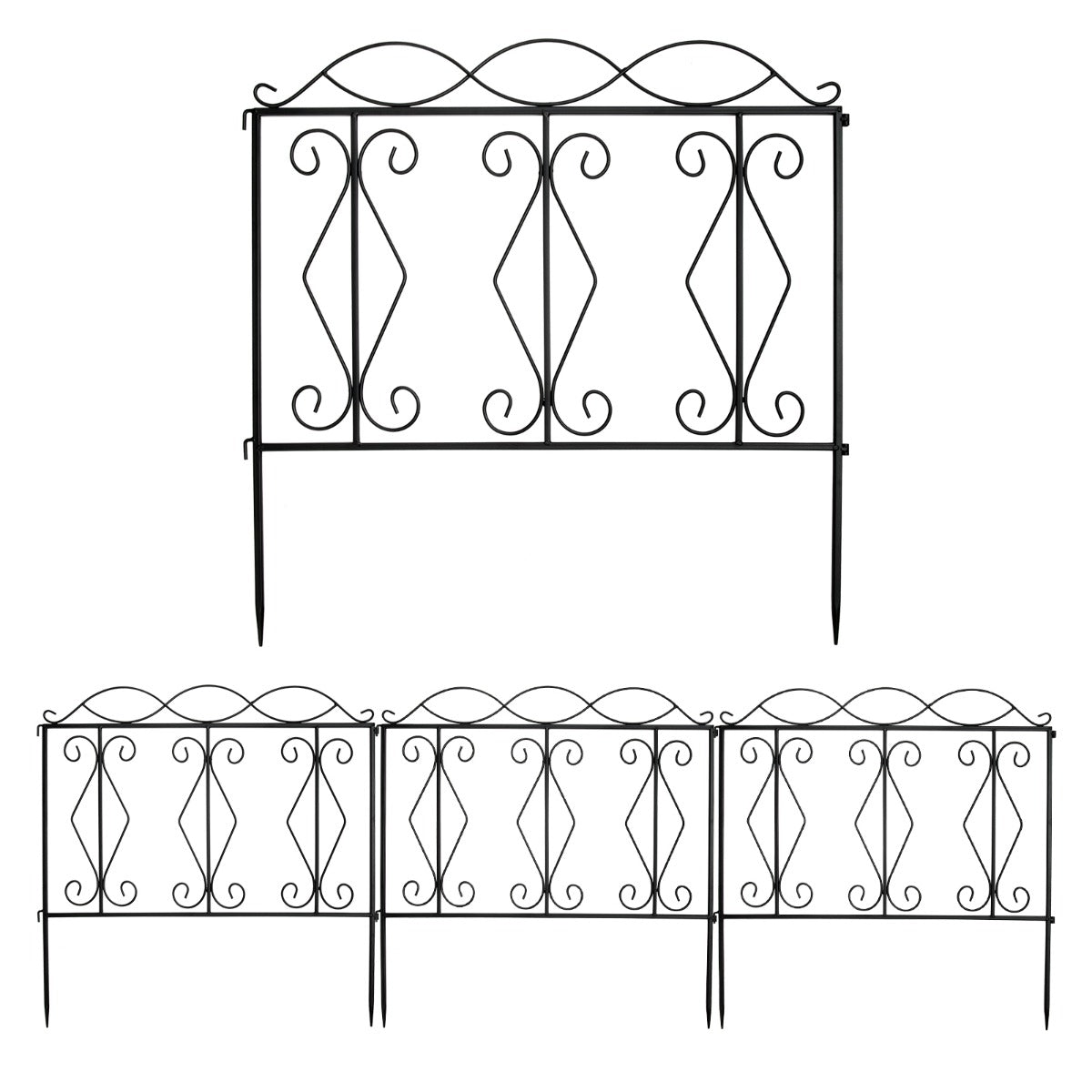 Weather Resistant Material: This decorative garden fence is made of premium black steel with rustproof coated surface, which ensures the weather resistance and corrosion resistance for long term outdoor use. Besides, the thickened iron wire has undergone excellent welding process, making the fence panel stronger and more durable.