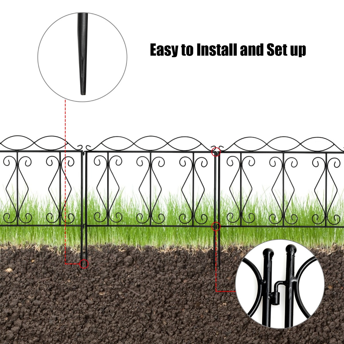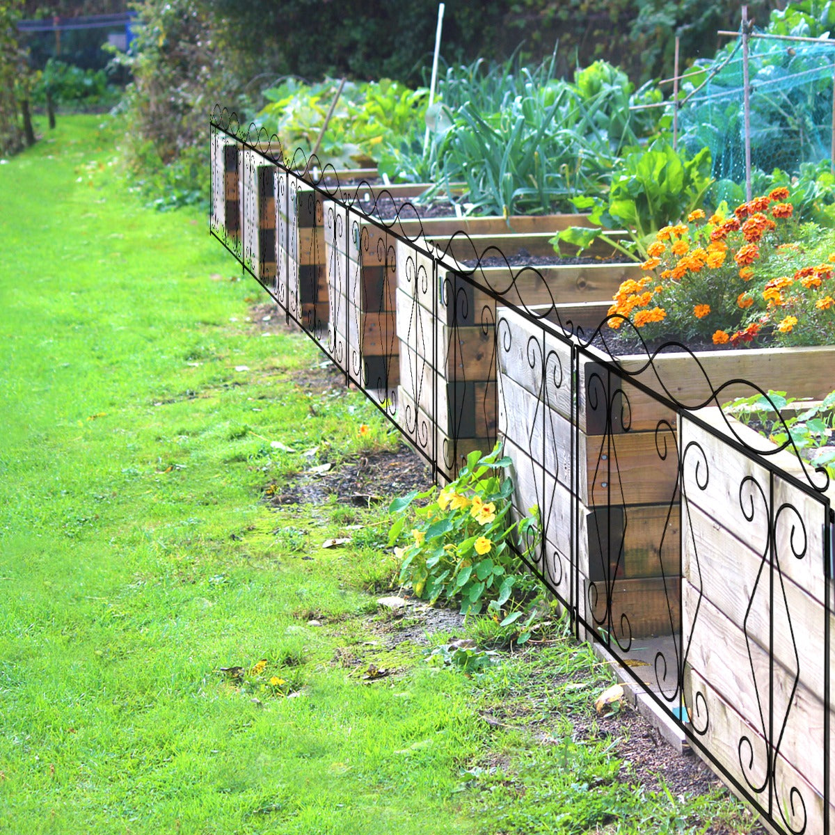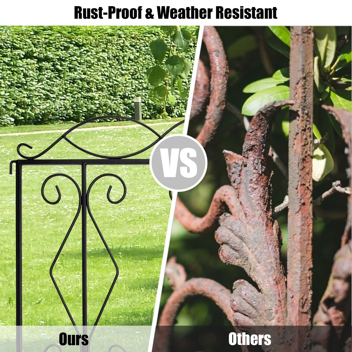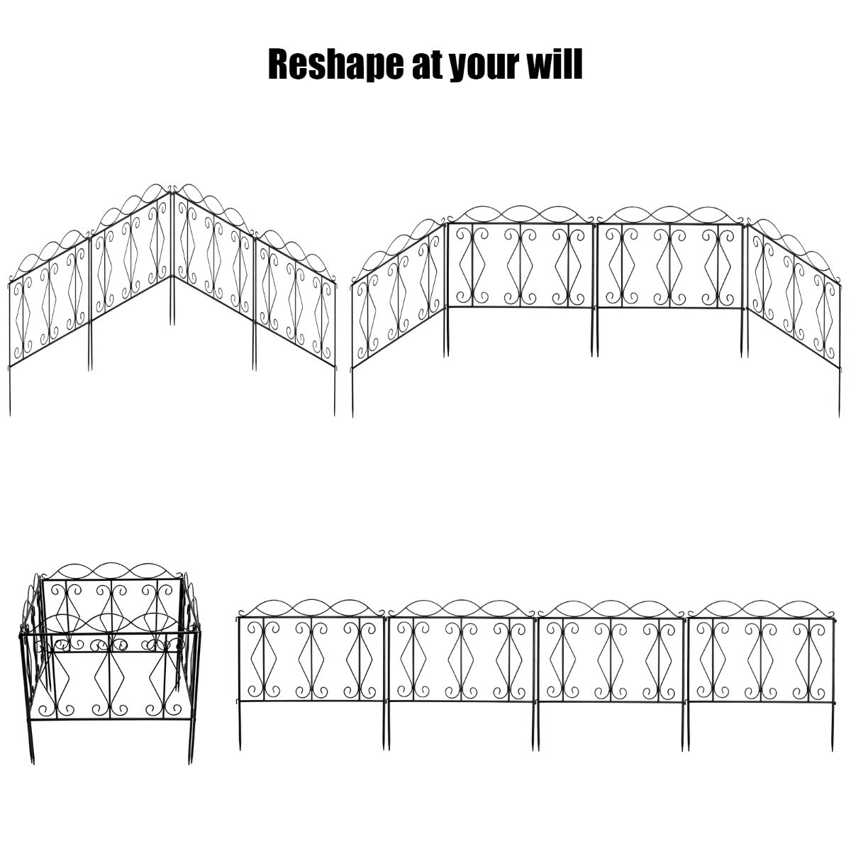 Weather Resistant Material: This decorative garden fence is made of premium black steel with rustproof coated surface, which ensures the weather resistance and corrosion resistance for long term outdoor use. Besides, the thickened iron wire has undergone excellent welding process, making the fence panel stronger and more durable.