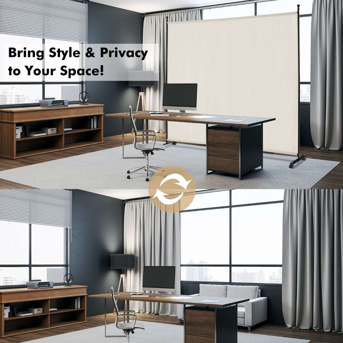 High-Quality Materials: This privacy partition is made of premium polyester fabric that is wear-resistant, breathable and easy to clean. And the screen panel is supported by a powder-coated metal tube frame and sturdy supporting base, offering a durable and stable construction for long-lasting use.