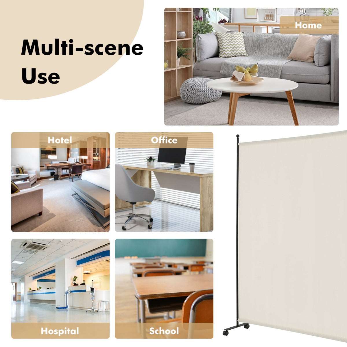 4 smooth rolling wheels bring convenience for you to move the wall divider