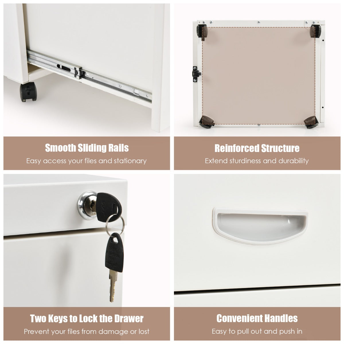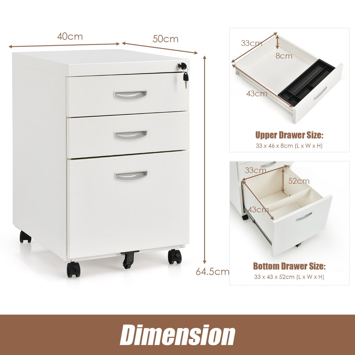 Aussies Market 3-Drawer File Cabinet with 2 Keys and Handles