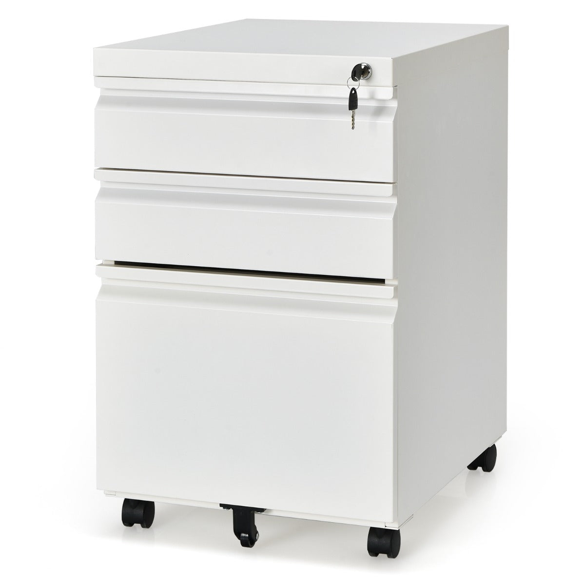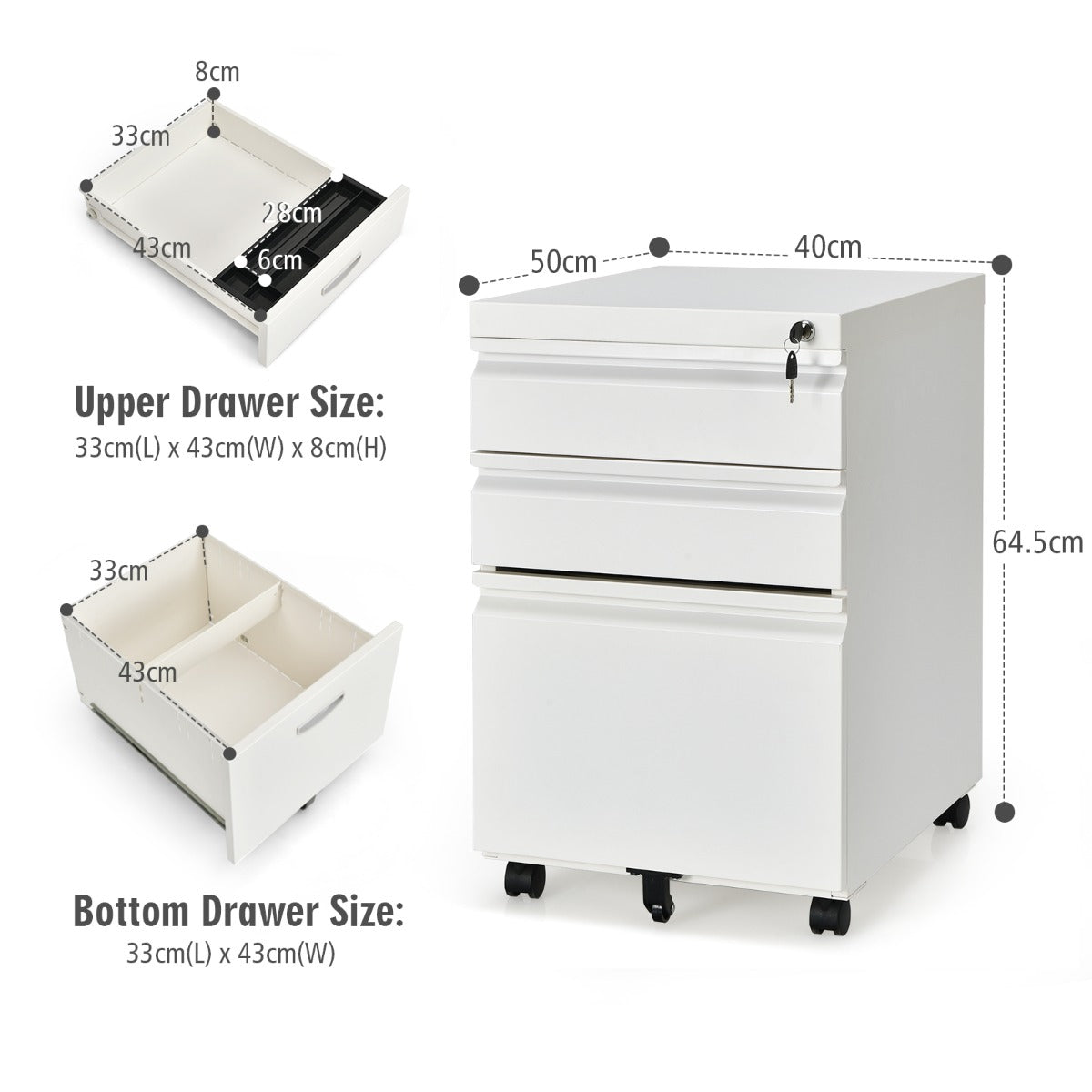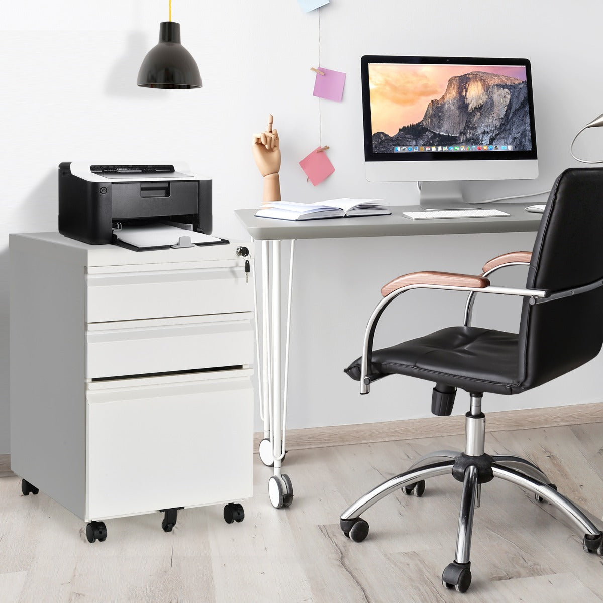 If you are looking for a practical file cabinet to be placed in your home or office, this filing organizer is just what you need. Constructed of a heavy-duty steel frame, the file cabinet is sturdy and durable enough for long-term use. This file cabinet is designed with 3 drawers to facilitate convenient storage for multiple office supplies. A deep drawer with an adjustable hanging bar is adapted to store letter-size, legal-size and A4 files. The removable pencil tray makes the desktop tidier. It also comes with two keys to ensure the privacy and safety of documents. Equipped with 5 smooth-rolling casters, this file cabinet is easy to move anywhere you need. It is designed with a modern and concise look that perfectly decorates your home or office. The file cabinet will make you feel easier at work.