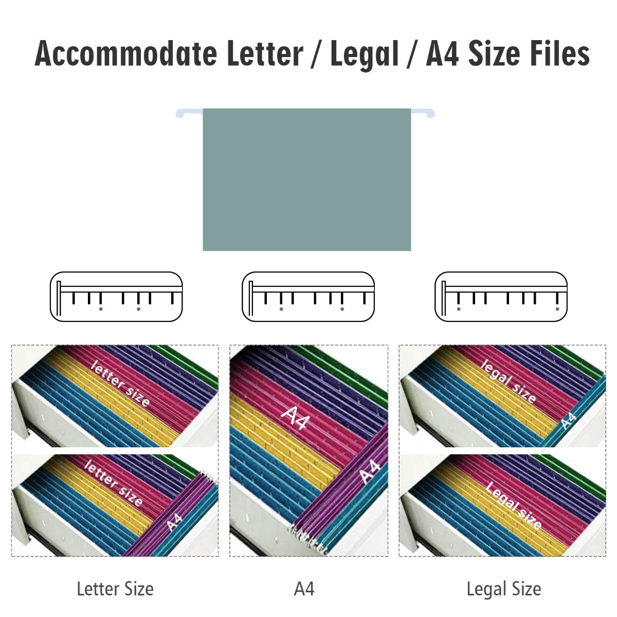 Convenient Filing Organizer: The file cabinet comes with a removable pencil tray to make your desktop neat. A deep file drawer is equipped with an adjustable hanging bar that accommodates letter-size, legal-size and A4 documents. It fits under most desks and can be served as a good assistant for home and office.