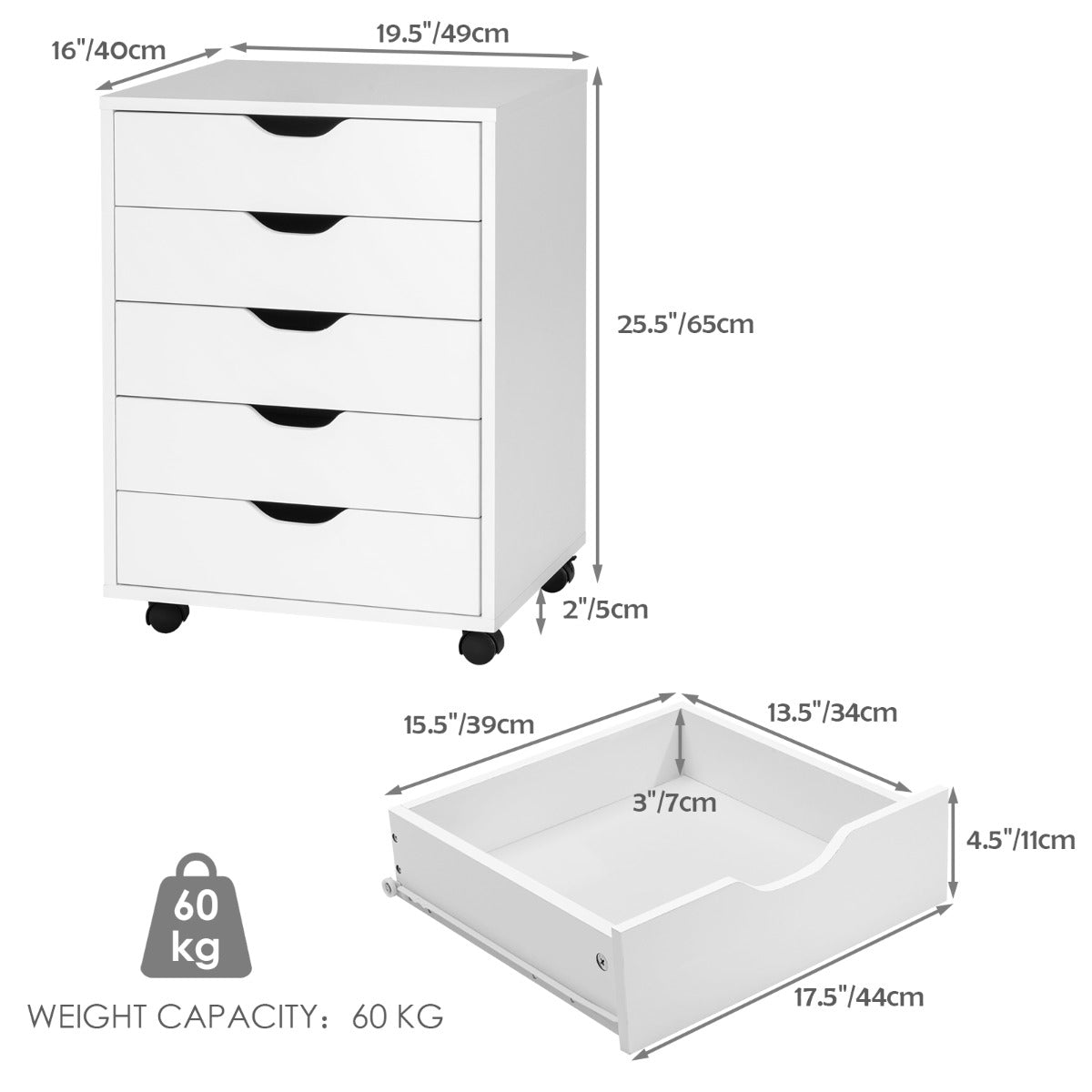 Aussies Market Chest of Drawers with 4 Swivel Wheels for Home and Office