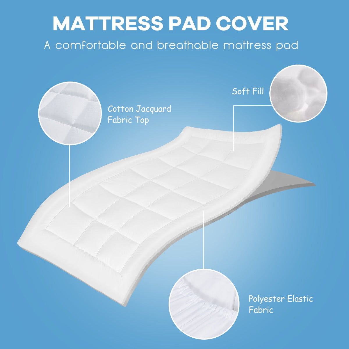 Safe Bed Pad Cover: The Single/Double/Queen/king size mattress protector safeguards your mattress against dirty, providing a cleaner and more comfortable environment for you and your family. The mattress pad cover is odorless and ideal for children and the elder.