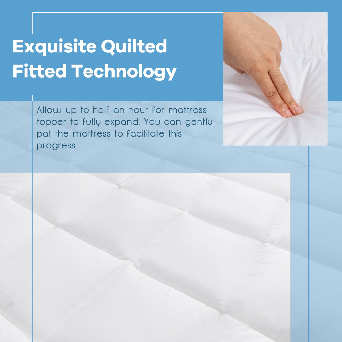 Comfortable Mattress Pad: Unlike most counterparts, this quilted fitted mattress pad is with much more breathable and fluffy-to create a natural sleep environment with exquisite soft touching feeling, massaging away your stress and fatigue to help you drift into sweet dreams quietly and comfortably.