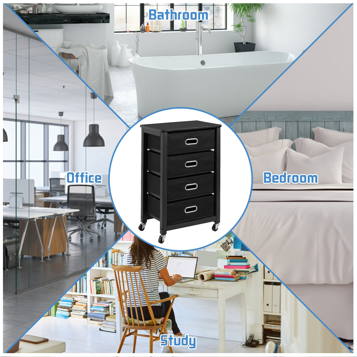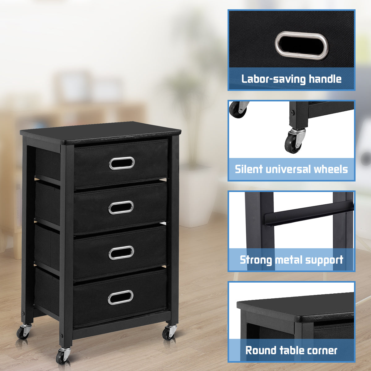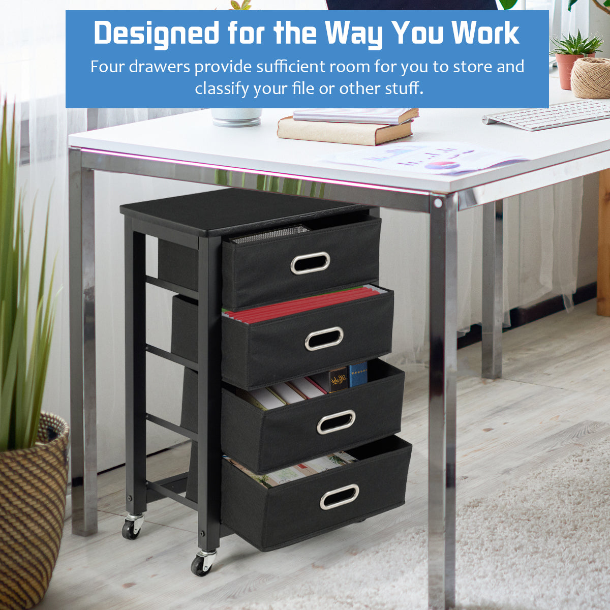 Aussies Market Heavy Duty Rolling File Cabinet with 4 Drawers