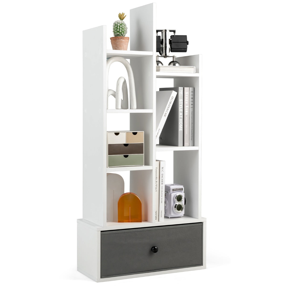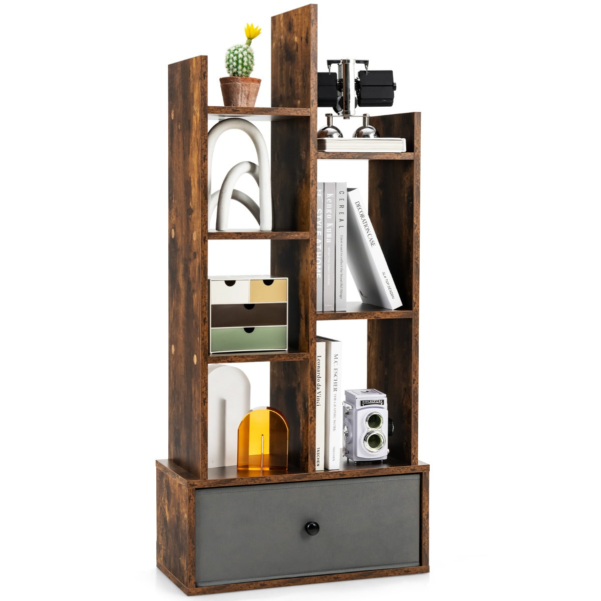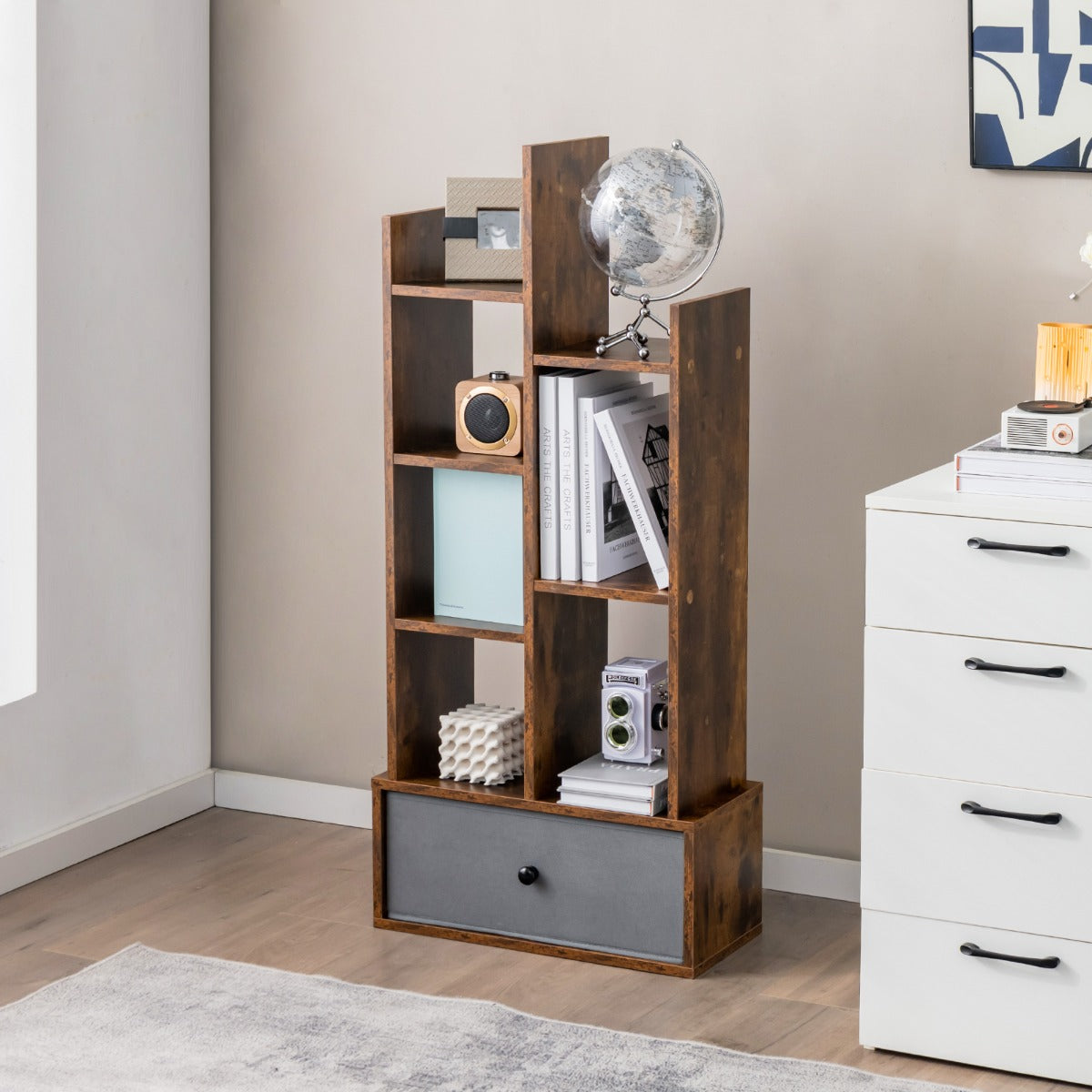 Aussies Market Industrial Bookshelf with Non-woven Drawer& 7 Storage Shelves