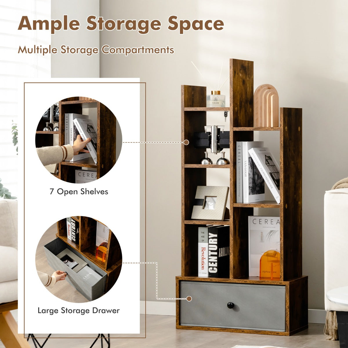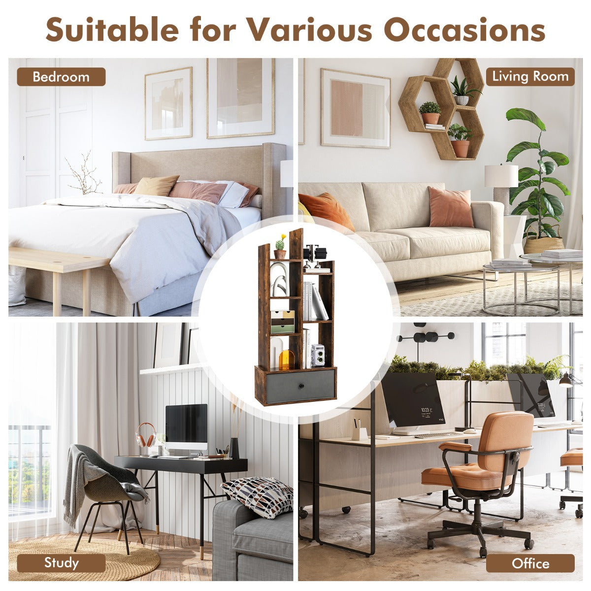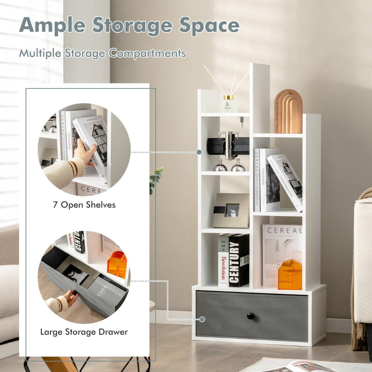 Have you struggled with an untidy and annoying desktop before? Why not try our brand-new bookshelf? It consists of 7 open shelves and a large drawer, allowing you to store a lot of stuff, such as books, magazines, potted plants,...View More