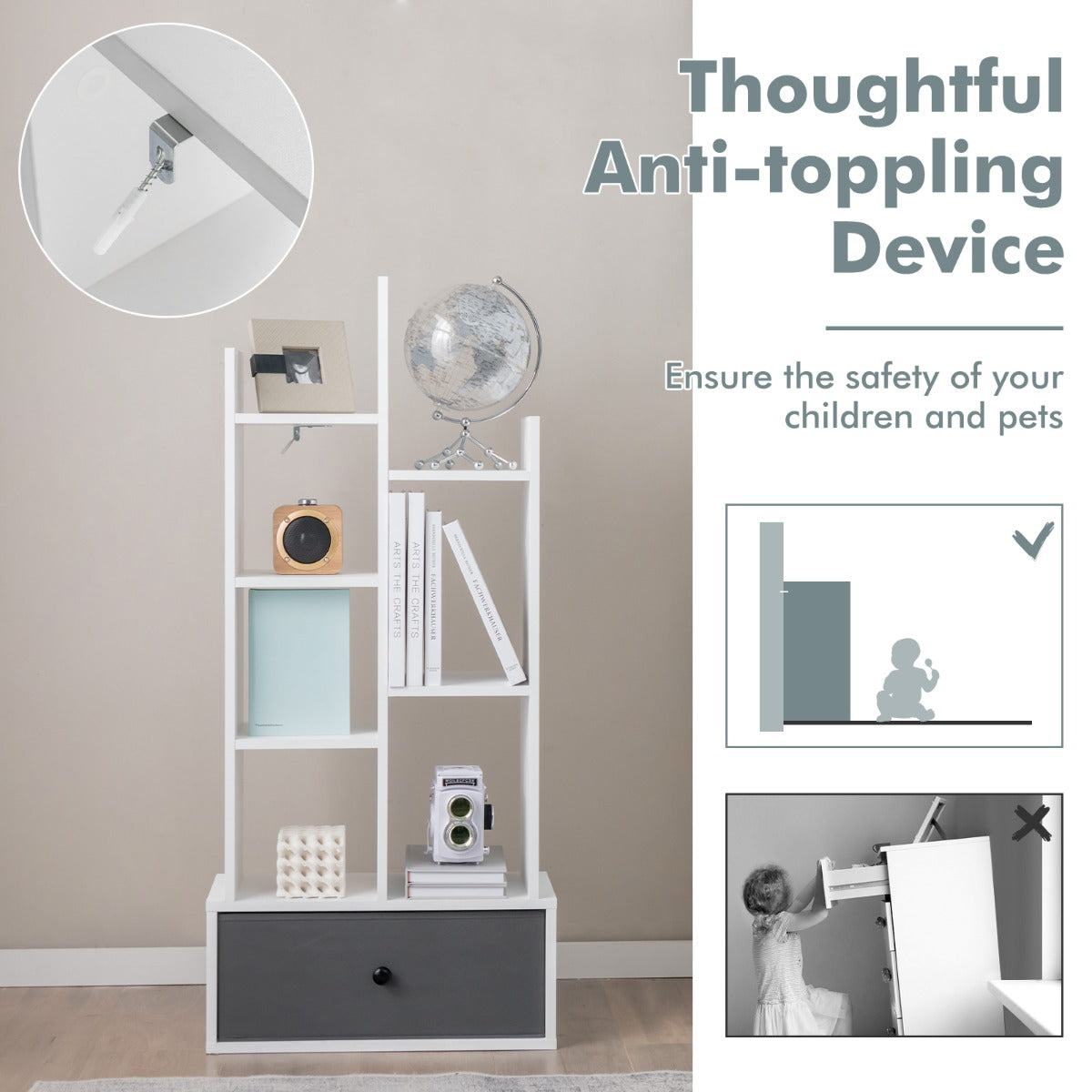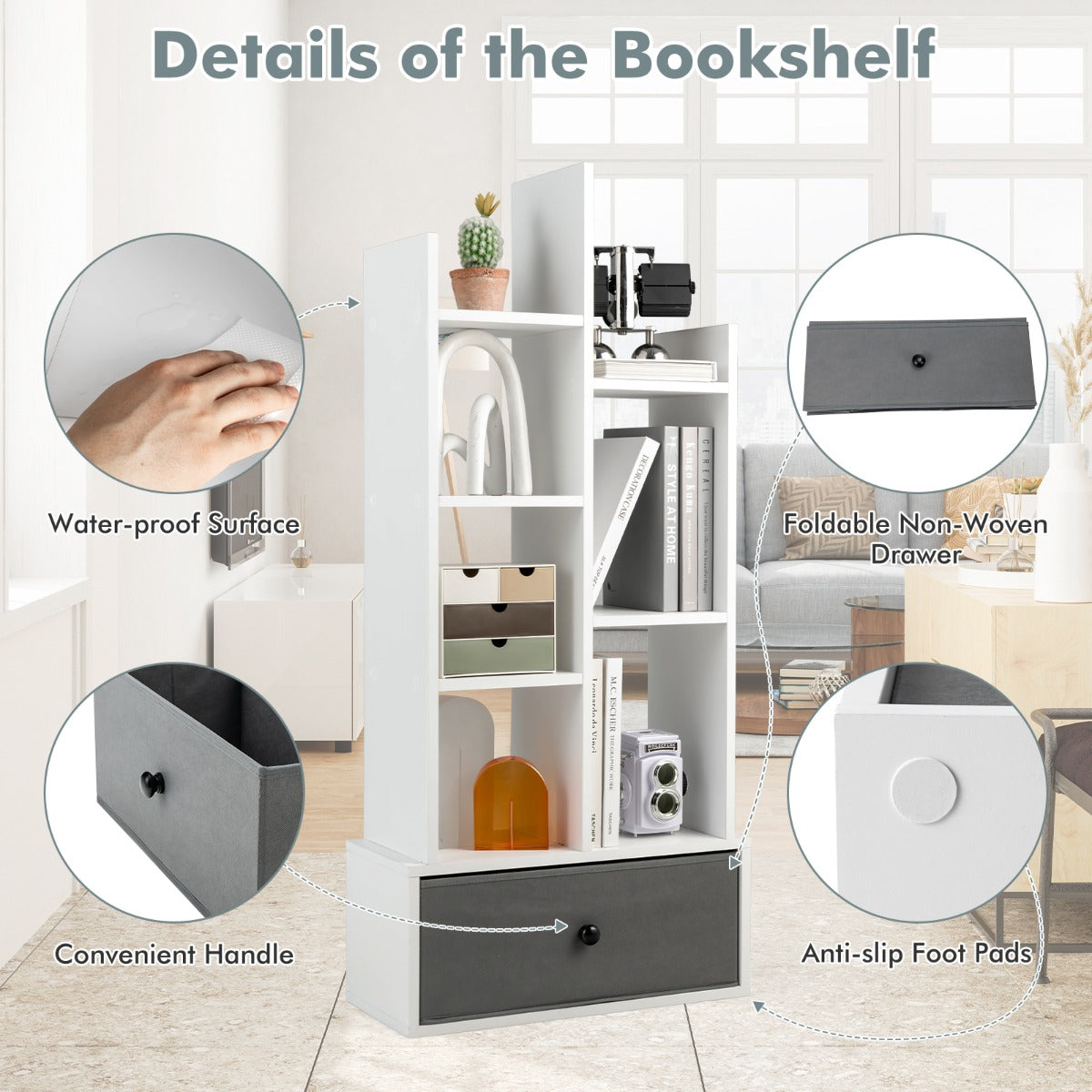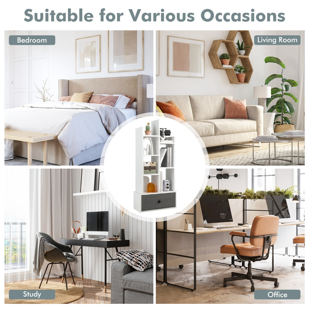 Have you struggled with an untidy and annoying desktop before? Why not try our brand-new bookshelf? It consists of 7 open shelves and a large drawer, allowing you to store a lot of stuff, such as books, magazines, potted plants,...View More