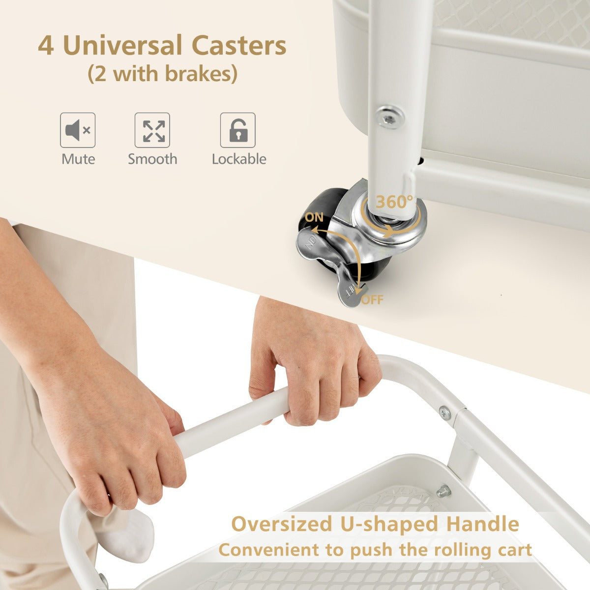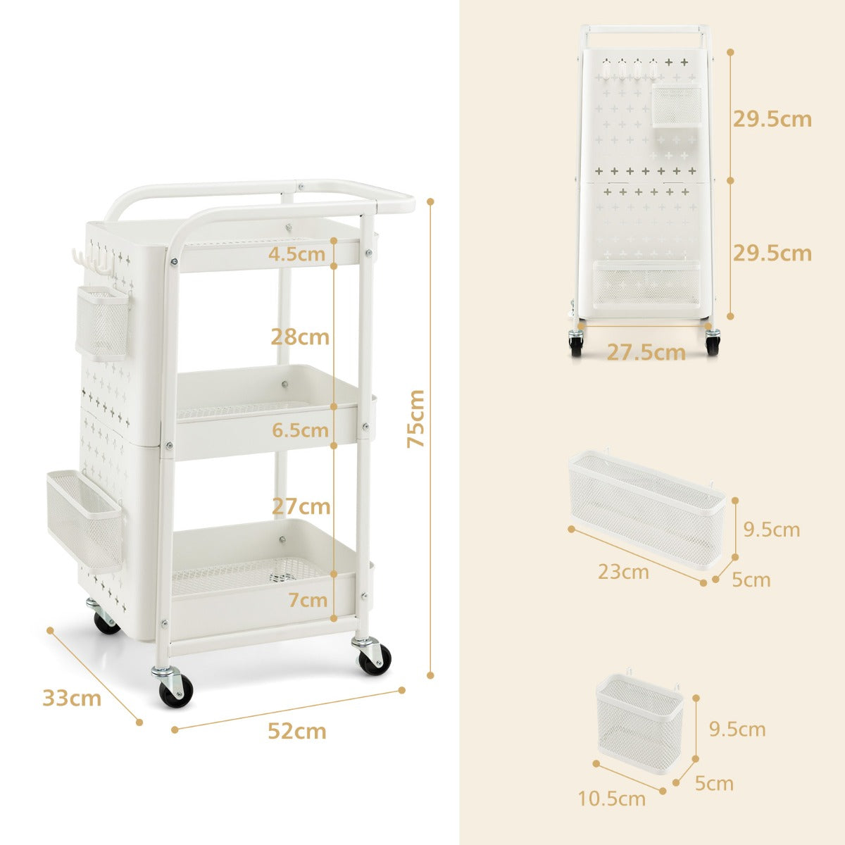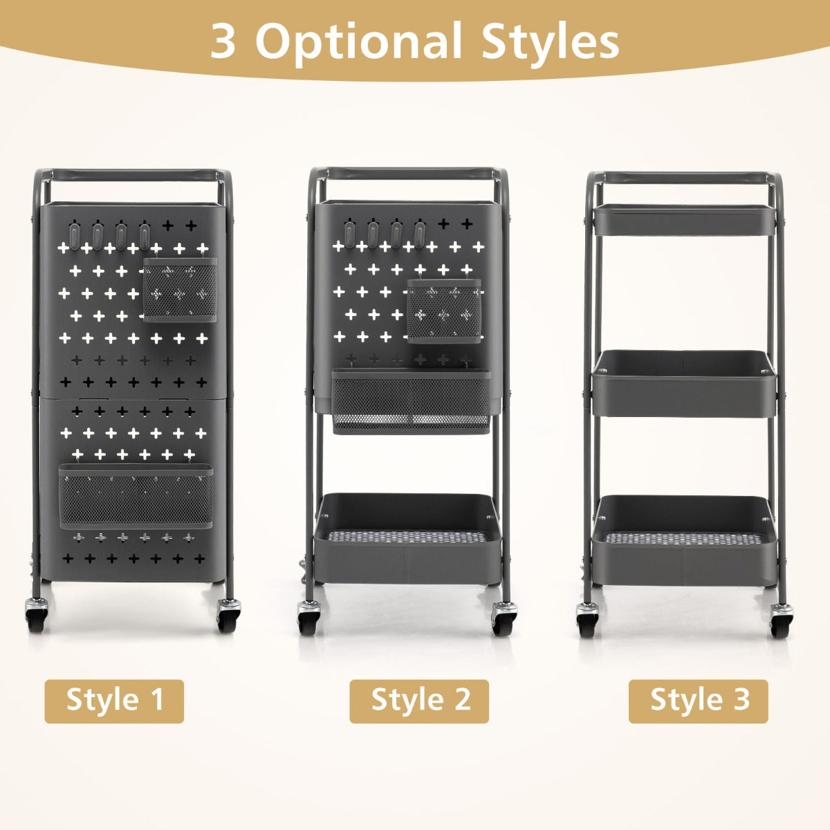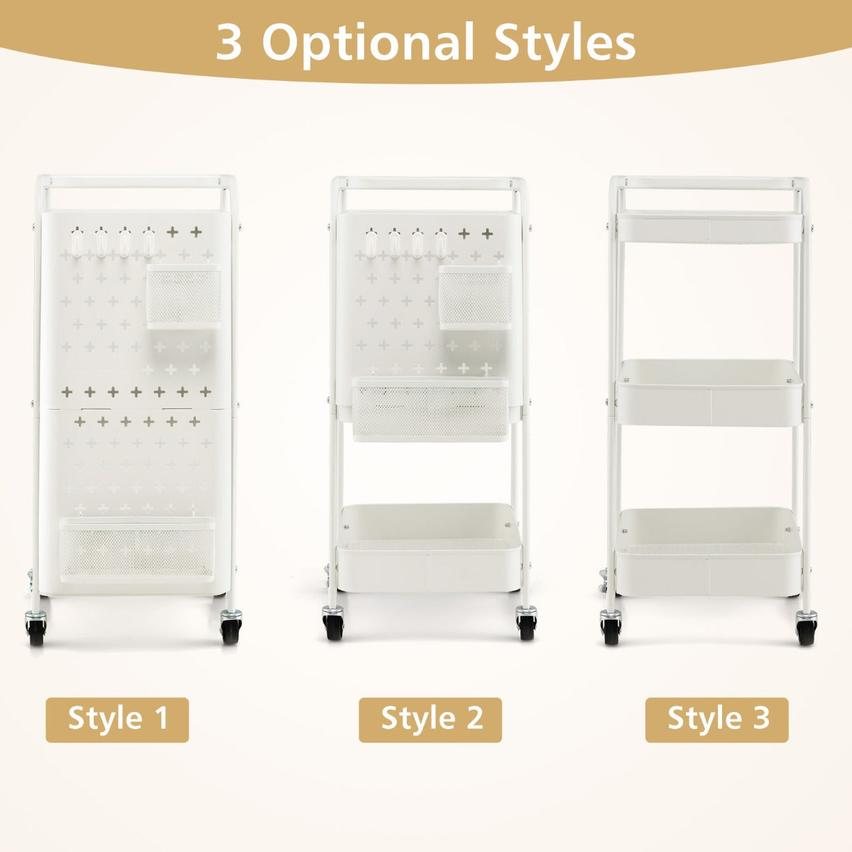 Aussies Market Kitchen Storage Trolley Cart with 3-Tier Shelves