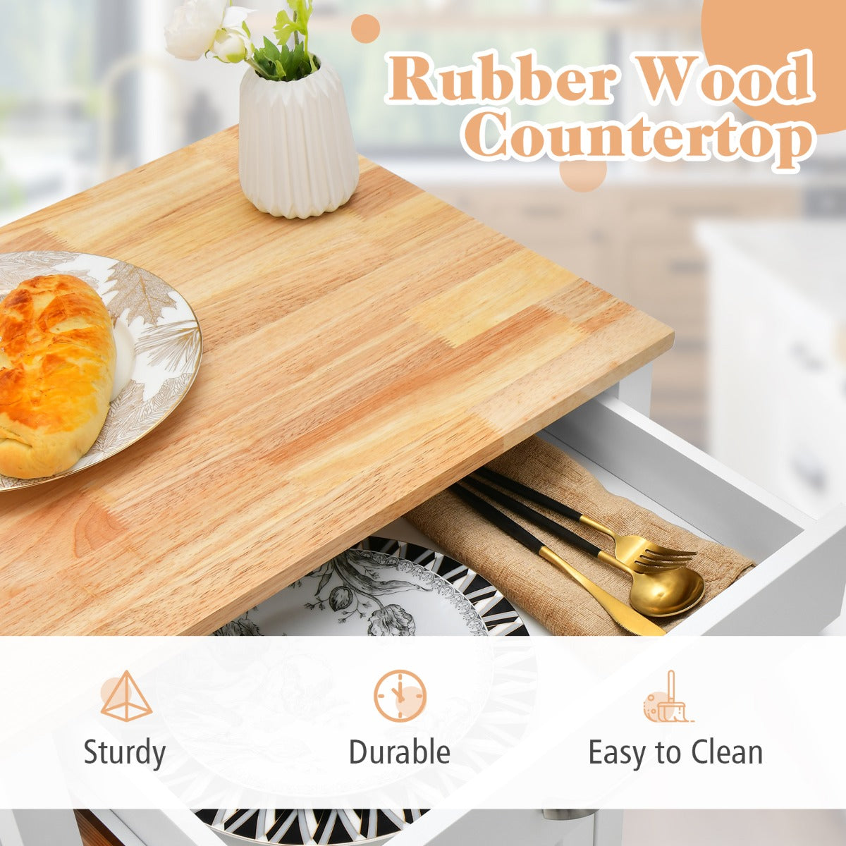 Built for Sturdiness & Durability: The top of this rolling kitchen island is made of robust rubber wood, which is sturdy and easy to clean. Additionally, this kitchen cart is also constructed from premium MDF and strong solid wood legs, making this cart stable and long-lasting.