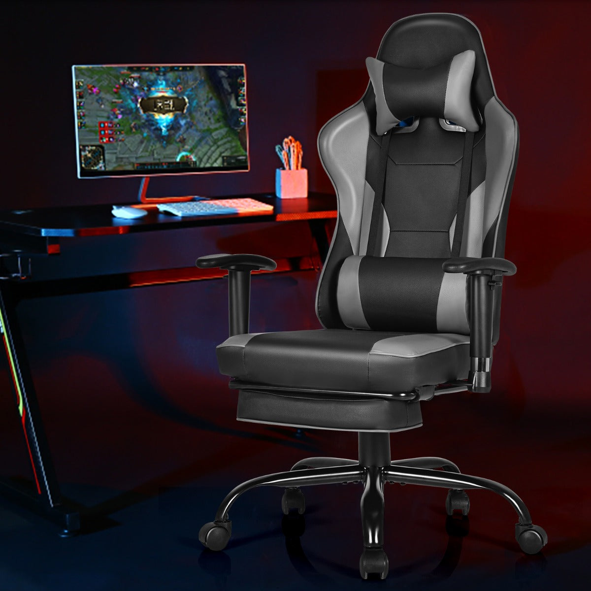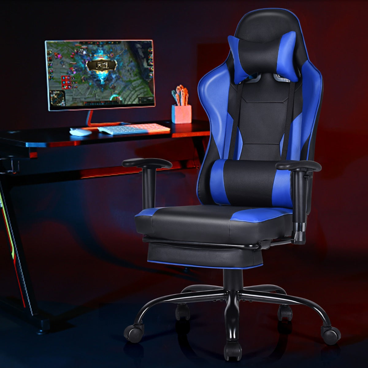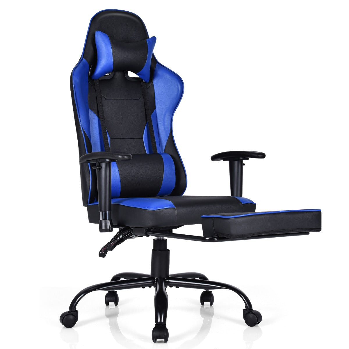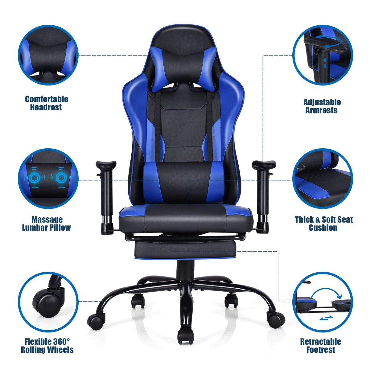 Ergonomic Design for Ultra Comfort: Equipped with a high backrest, removable headrest and massage lumbar cushion, this gaming chair can give you strong support for your whole body, keeping you comfortable after playing or working for a long time. In addition, the retractable footrest allows you to take a nap when you're tired.