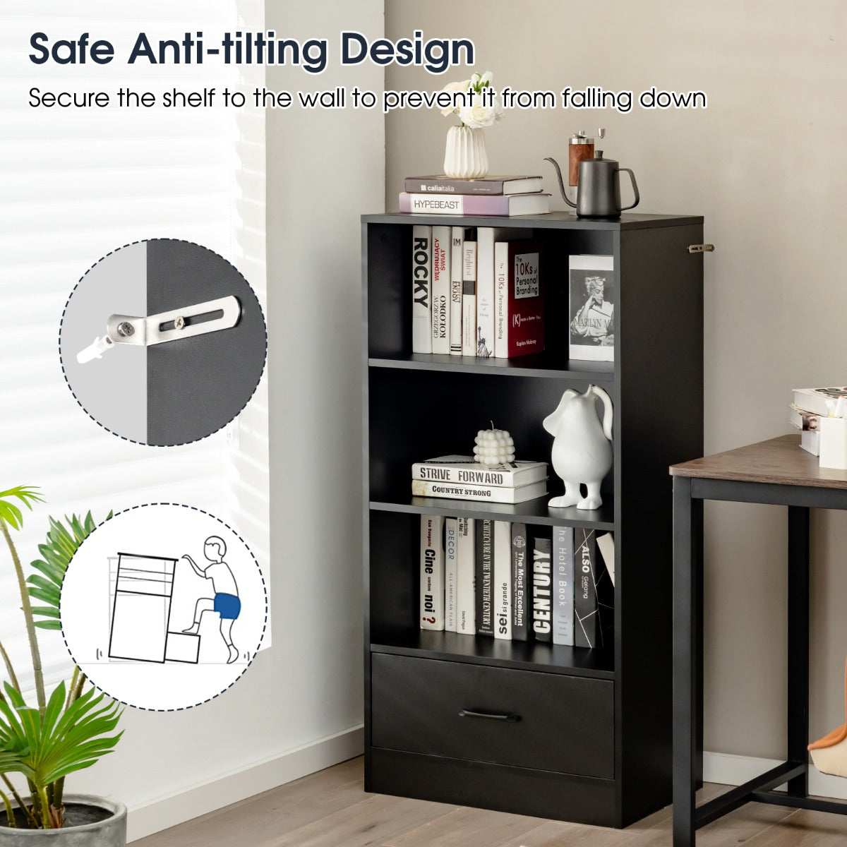 Aussies Market Wood Bookcase with Storage Drawer for Living Room