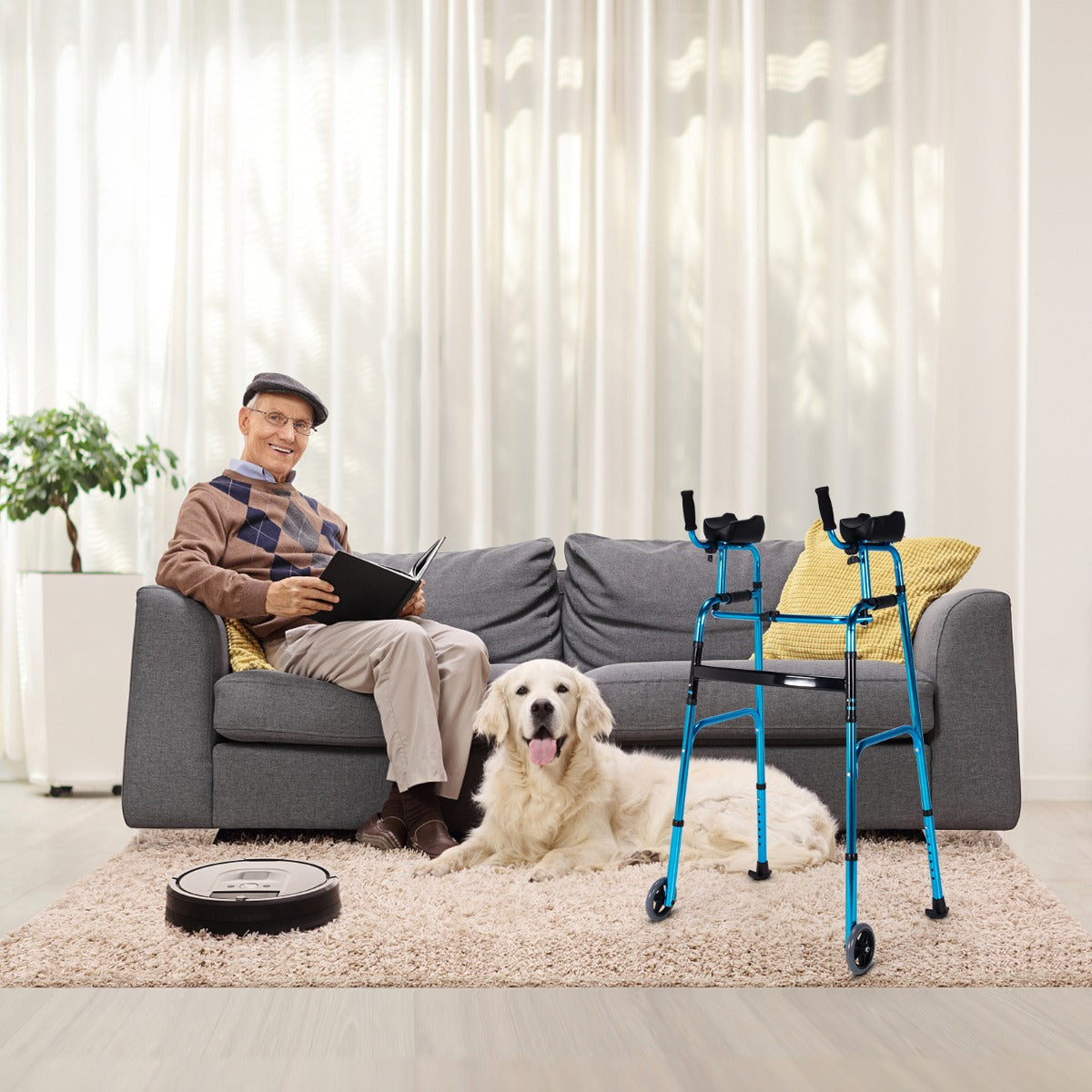 There is a portable wheel walker with armrest for the adults with limited mobility. This standard walker is made of firm aluminum alloy, which gives a stable construction and a high loading capacity of up to 100kg. And the universal wheels, brake wheels and soft armrest of this walking frame gives the comfort and safety guarantee. Our walker has 7-levle height adjustment function and 4-level adjustable armrest, which can be widely applied to people of different heights. In addition, the standard walker with one-click folding design is easy to carry and store. This adjustable folding standard walker provides more comfort and convenience, and will be the intimate companion for adults with limited mobility!
