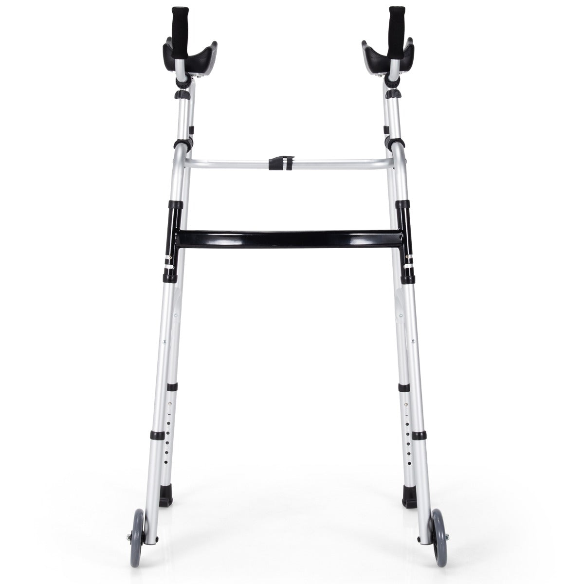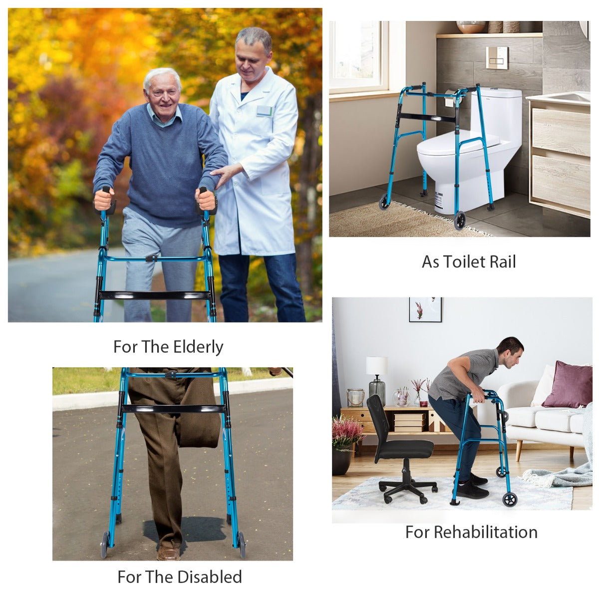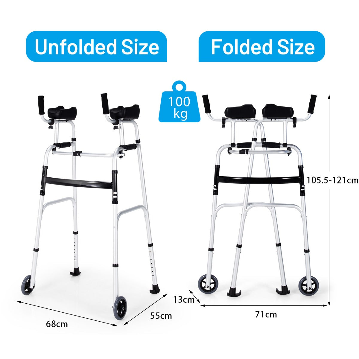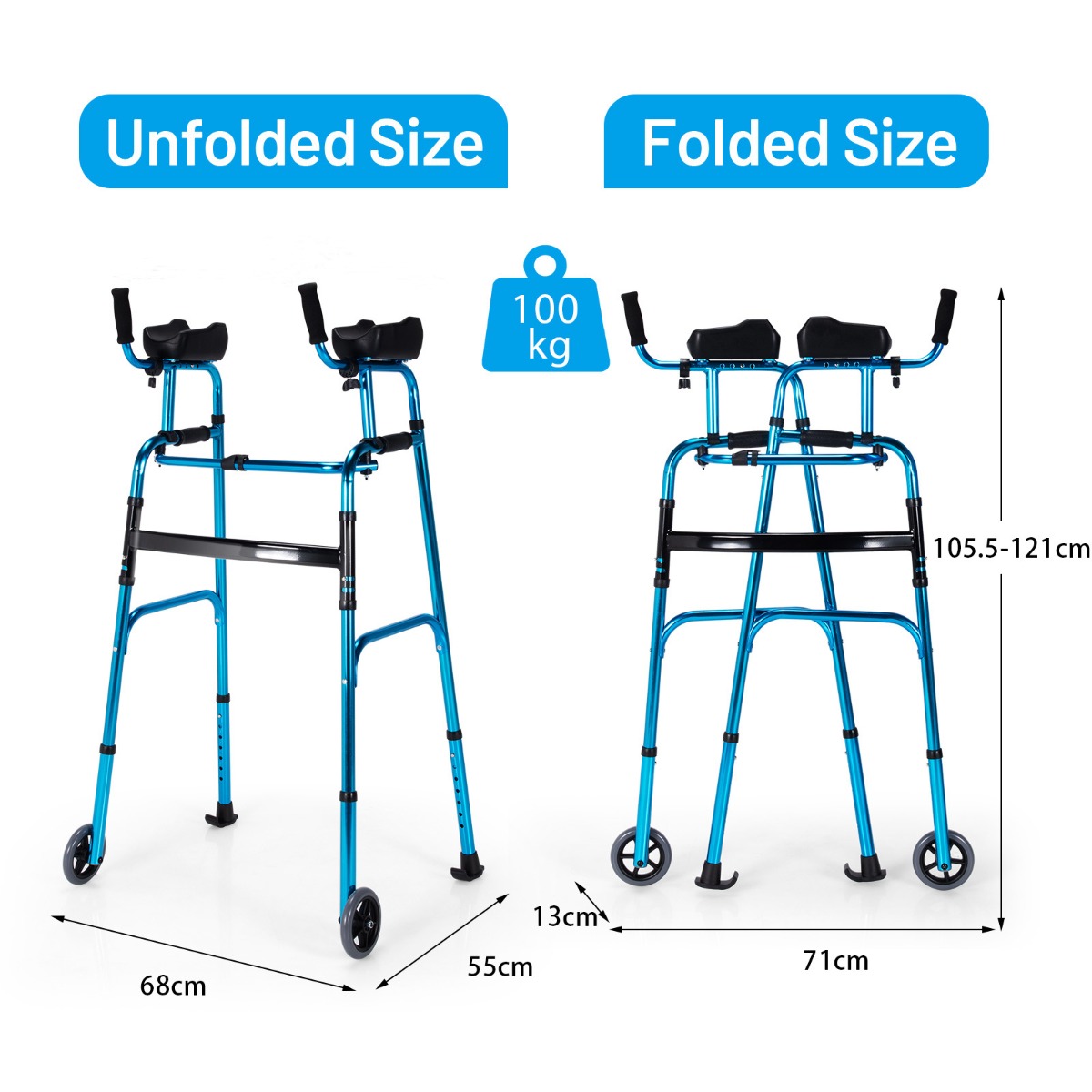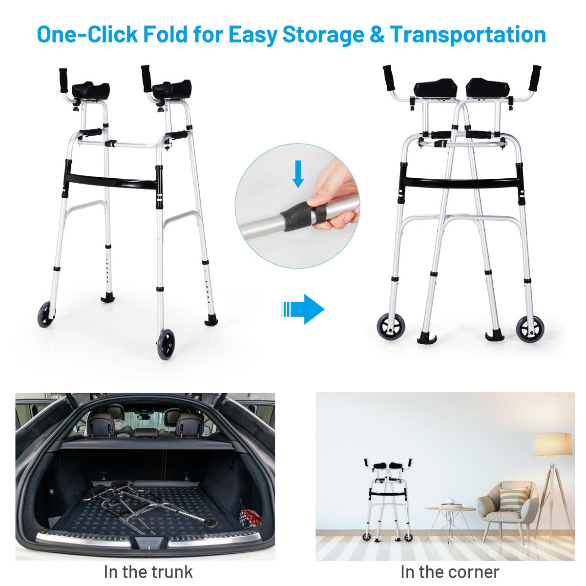 Foldable & Lightweight DesignThis walker comes with one-click design, which provides you with convenience to fold and store. The space-saving and lightweight walker can be put into your car, cabinets or any corners effortlessly. Moreover, two front wheels help you to easily move around.