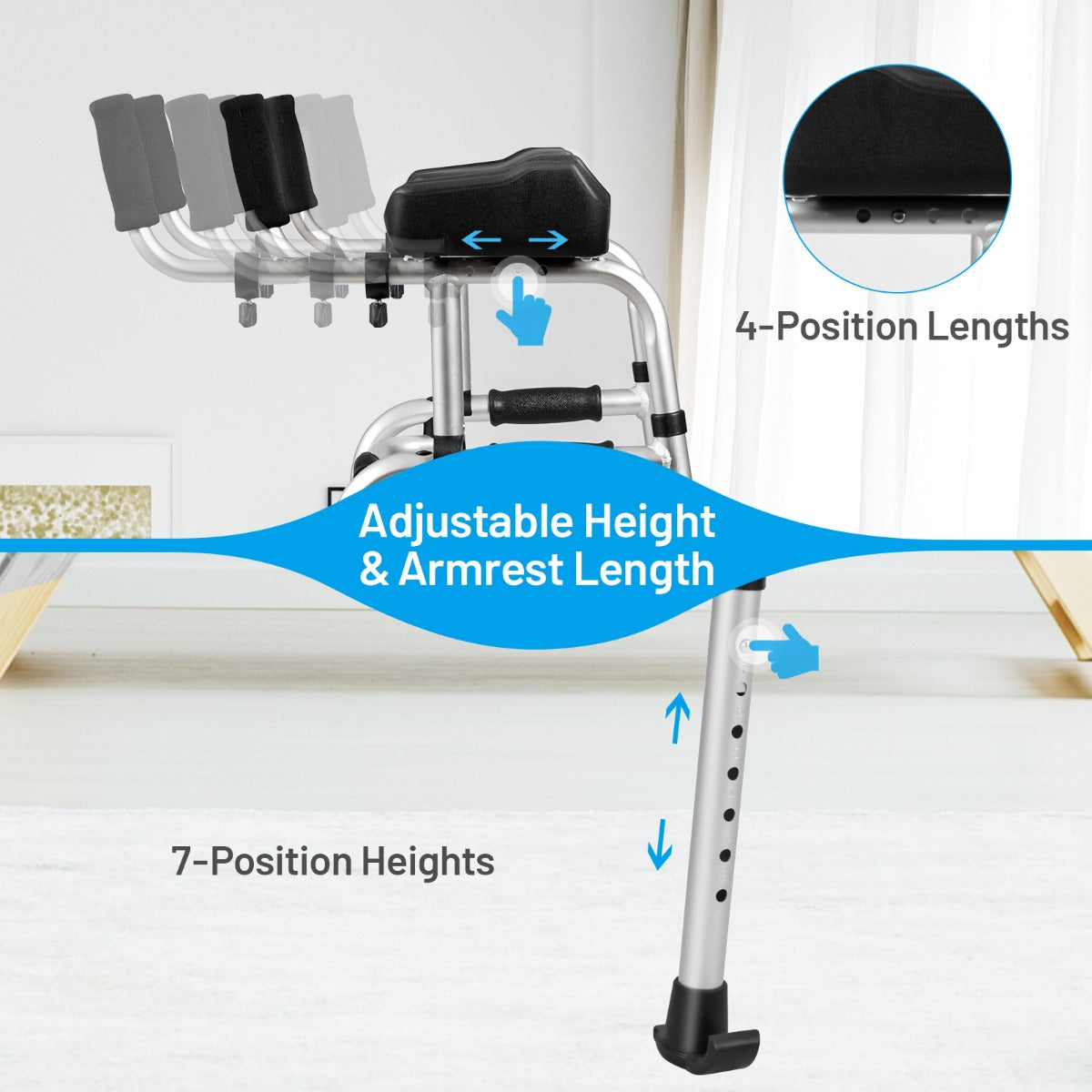Adjustable Height & Removable ArmrestOur standard walker features 7-level height adjustment and 4-level adjustable armrest, meeting your different needs. Besides, armrests on both sides help you to keep balance. By removing the armrests, you will get an ordinary walker.