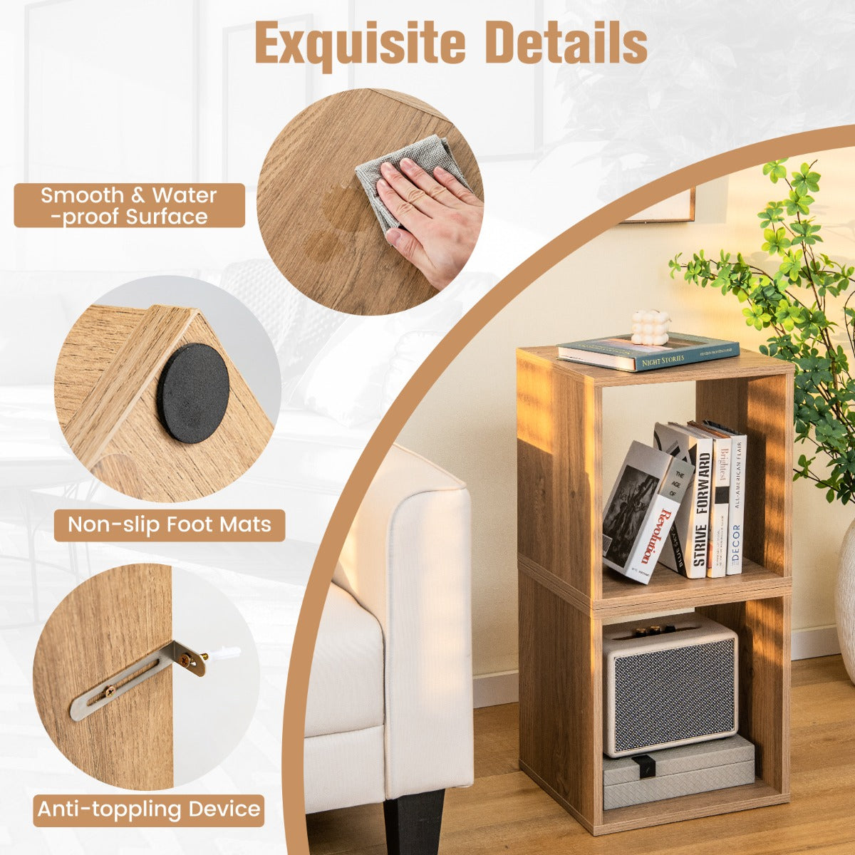 Aussies Market 2 Pieces Wood Stackable Storage Cube for Office, Living Room, Bedroom