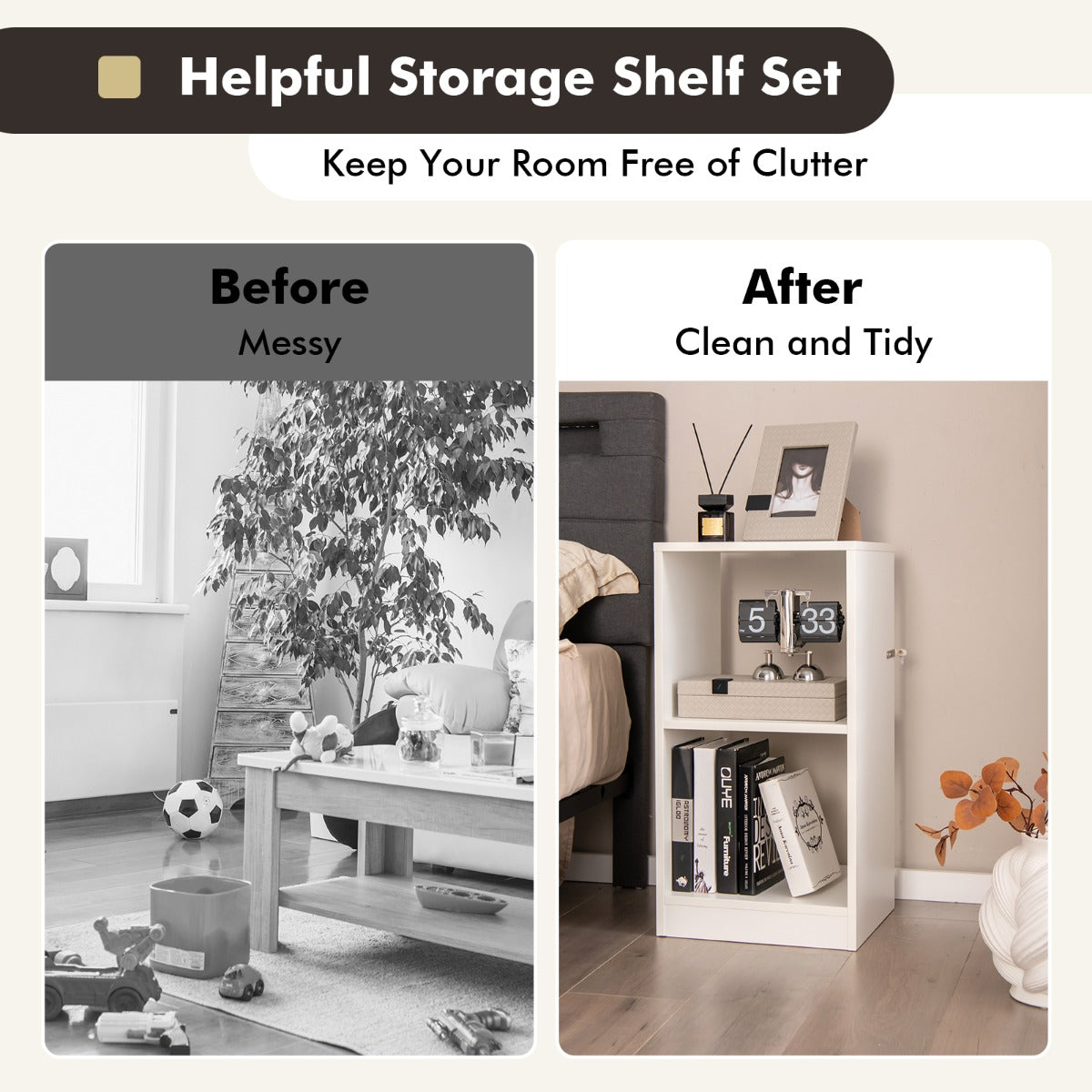 Aussies Market 2-tier Bookcase Set with Anti-toppling Device for Bedroom