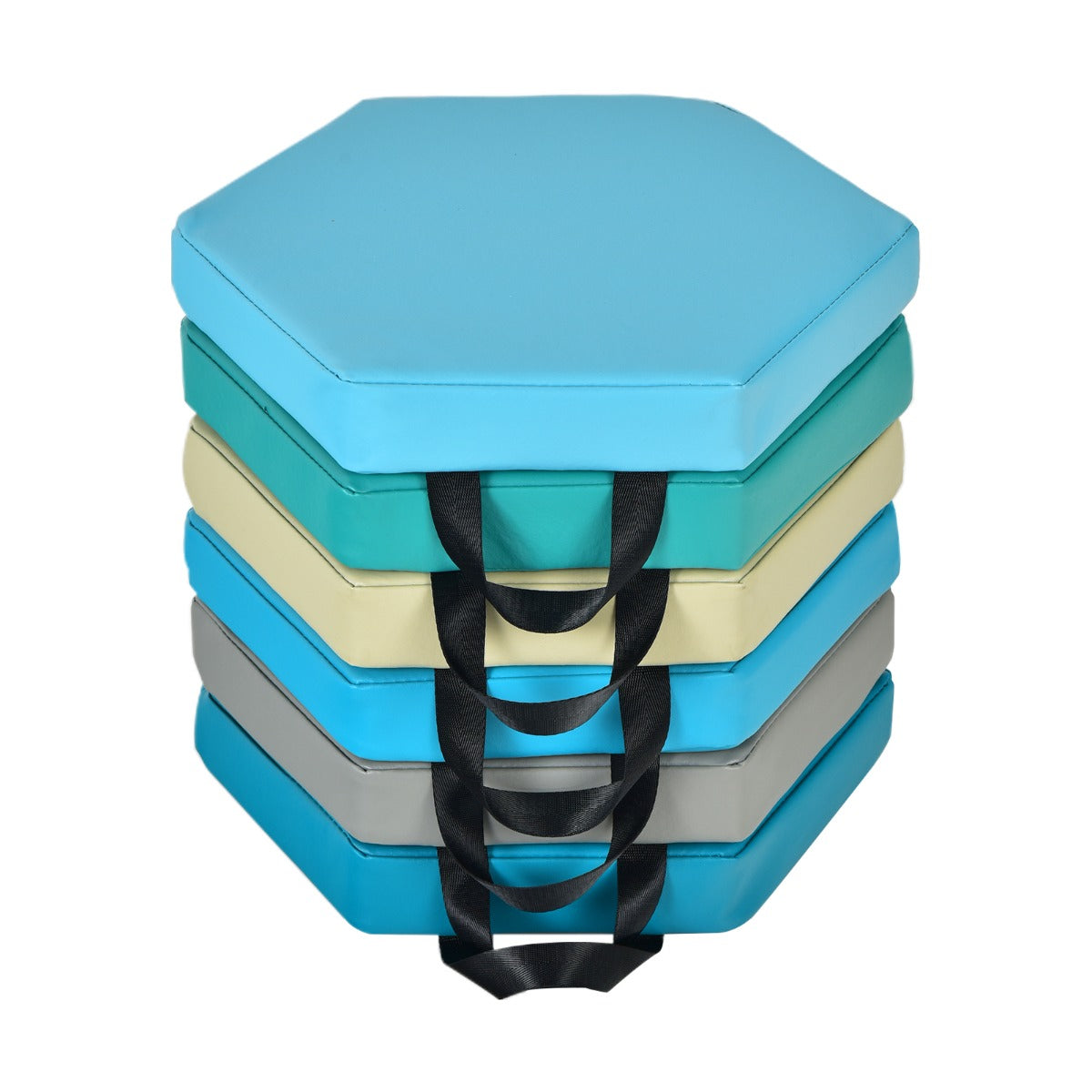 Are you looking for 6-piece seat cushions for your kids? Then consider our multi-color foam floor cushion. Made of non-toxic and high-quality PU and EPE materials, our high-density cushions are durable and can provide kids with a comfortable using experience. In addition, the surface of our cushion is waterproof and wear-resistant, which greatly simplifies the cleaning process and extends the service life. And light weight and ergonomic handle allow kids to carry at will. Our floor cushions are helpful for kids to identify colors, exercise cognitive ability and stimulate creativity.