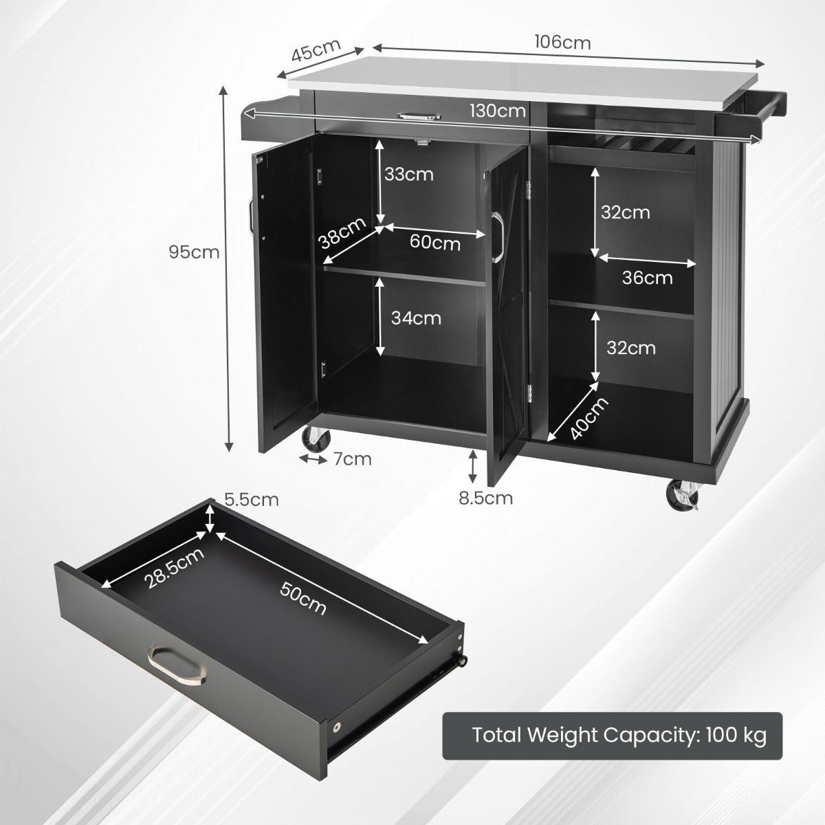 Total Weight Capacity: 100 kg