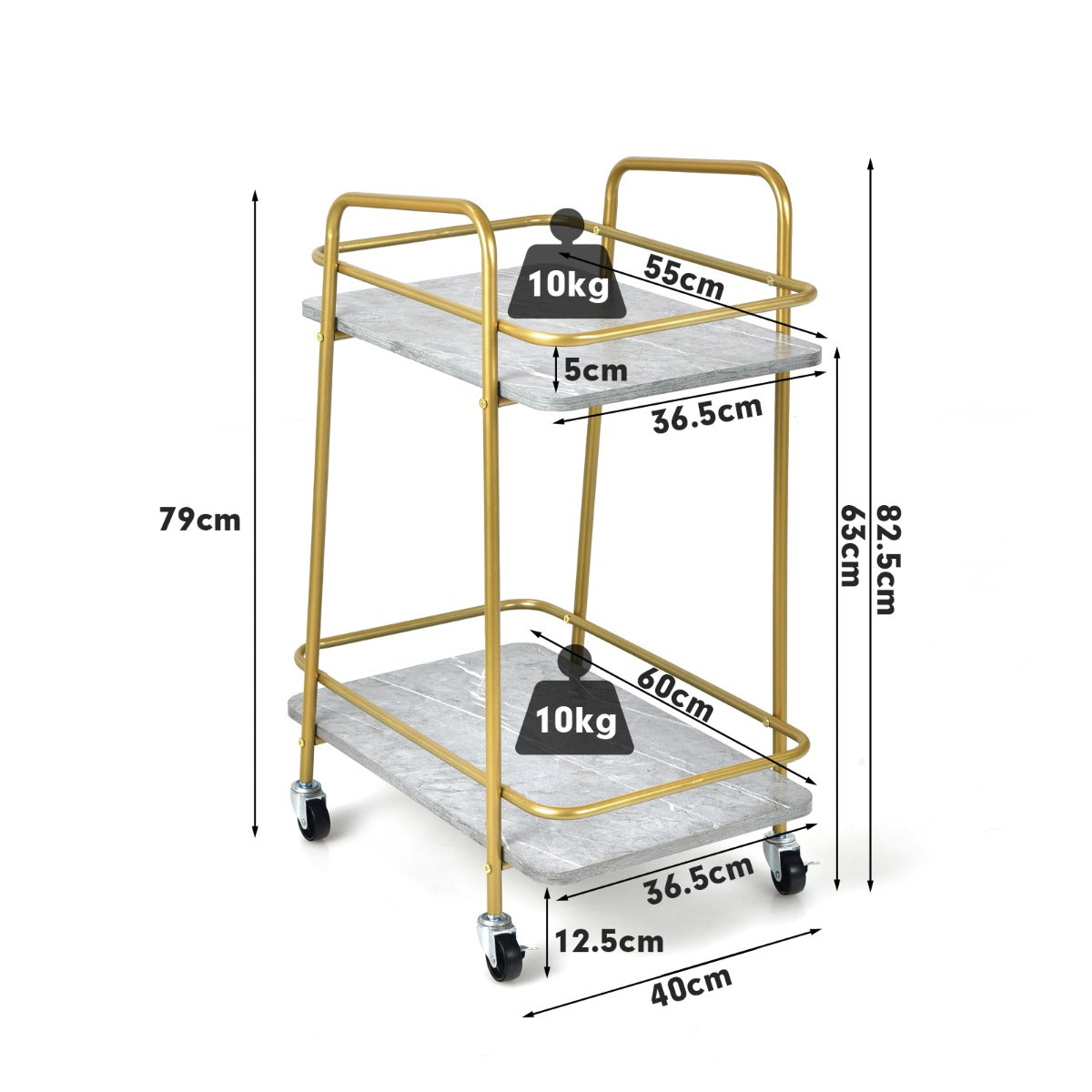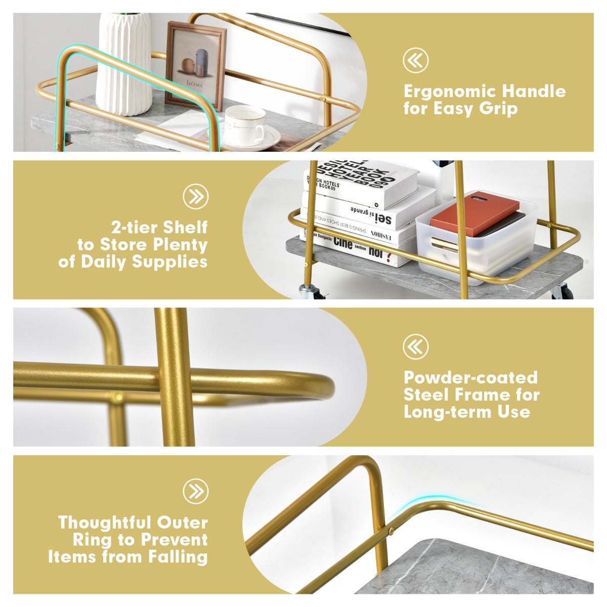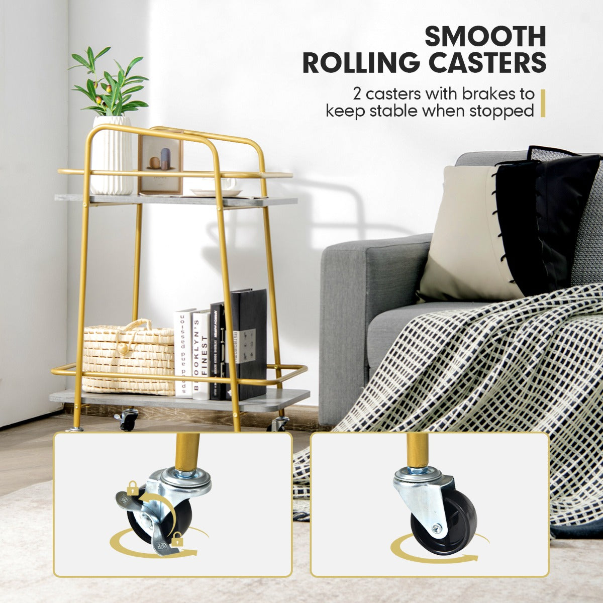 2-tier Shelf for Storage and Display: This mobile serving cart can maximize vertical storage while occupying small space, making your kitchen look more organized. Besides, 2-tier open shelf facilitates the placement for a variety of kitchen and dining essentials, such as dishware, kitchenware, spice jar, food, etc.